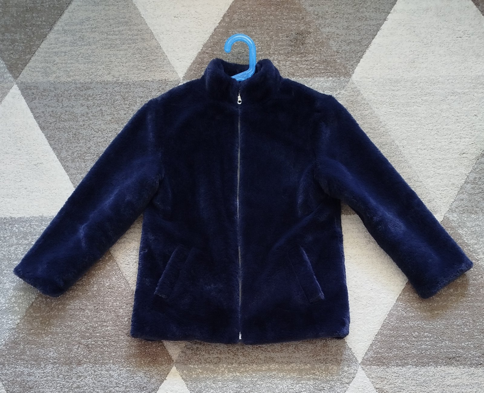 Nádherný hebunký kožúšok Tchibo, veľkosť 134/140. Je nový nenosený, vysačku som zahodila ale nakoniec sme ho nepoužili. Je neskutočne mäkkučký, dĺžka 57cm, prsia 42cm, rukáv od krku 55cm. Farba tmavomodrá, chĺpky sú jemne lesklé, preto sa nedá dobre odfotiť. Cena + pošta.