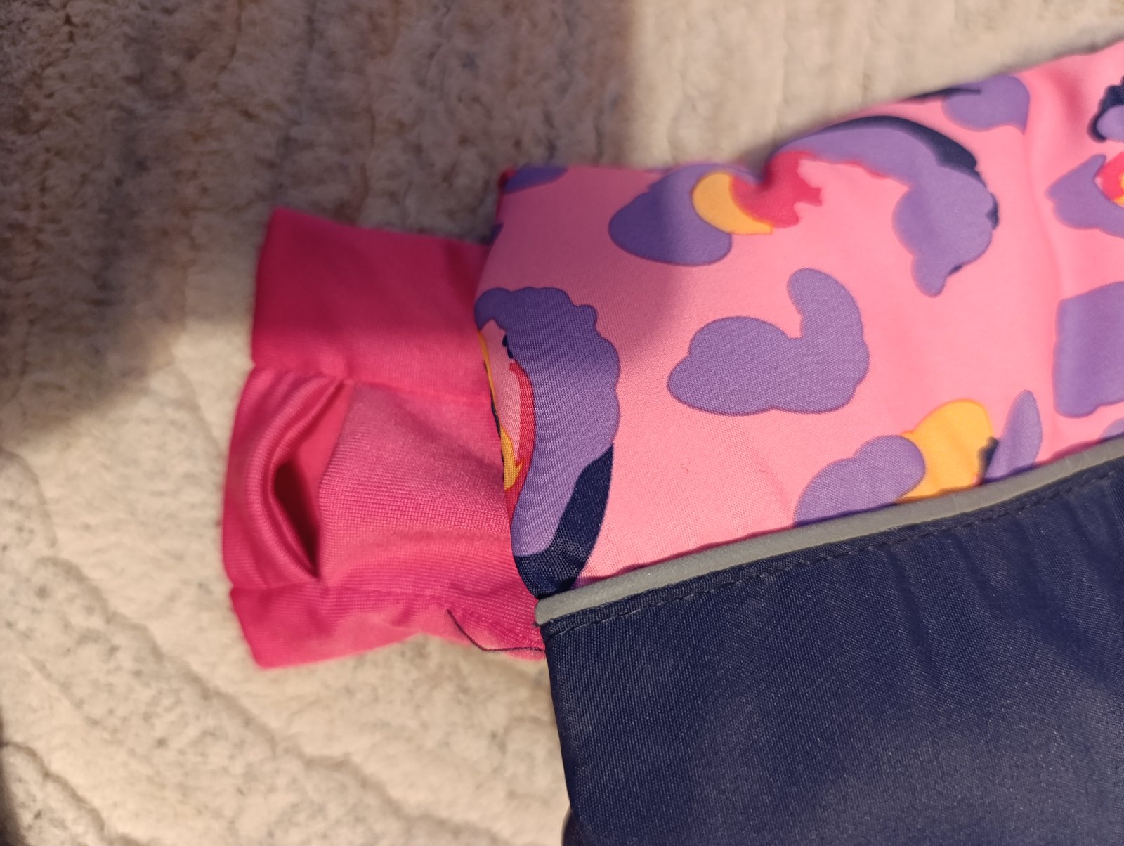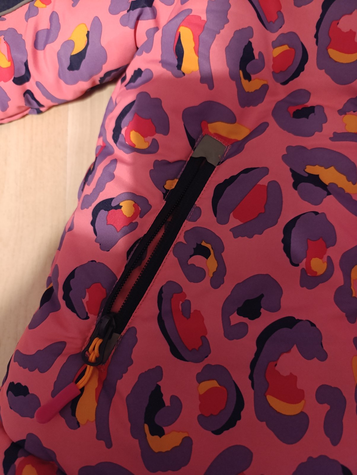 Dievčenska zimná bunda s reflexnými prvkami, zateplená flísom, aj vačky sú z jednej strany podšité flísom.