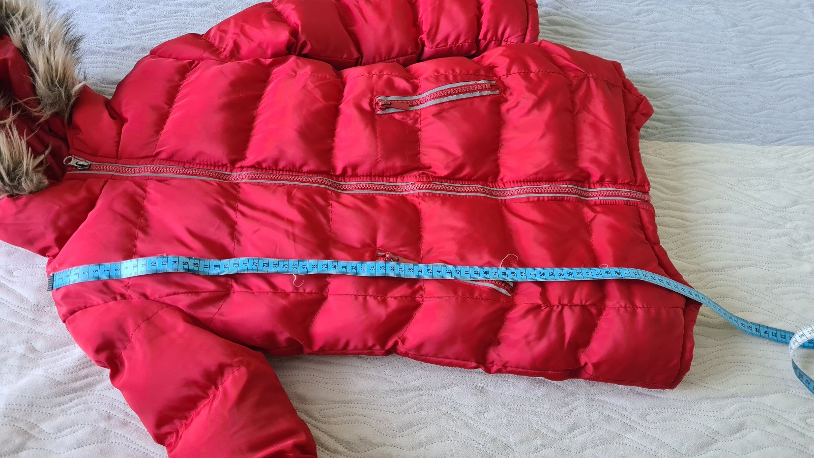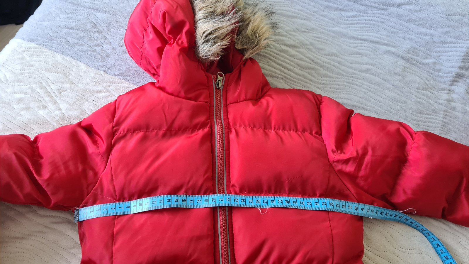 Predám teplú bundičku. Vhodná pre štíhle dievčatko. Rozmery sú na fotkách.