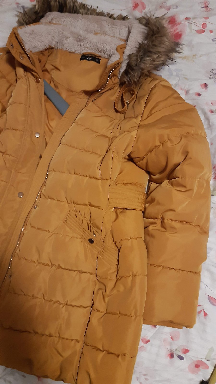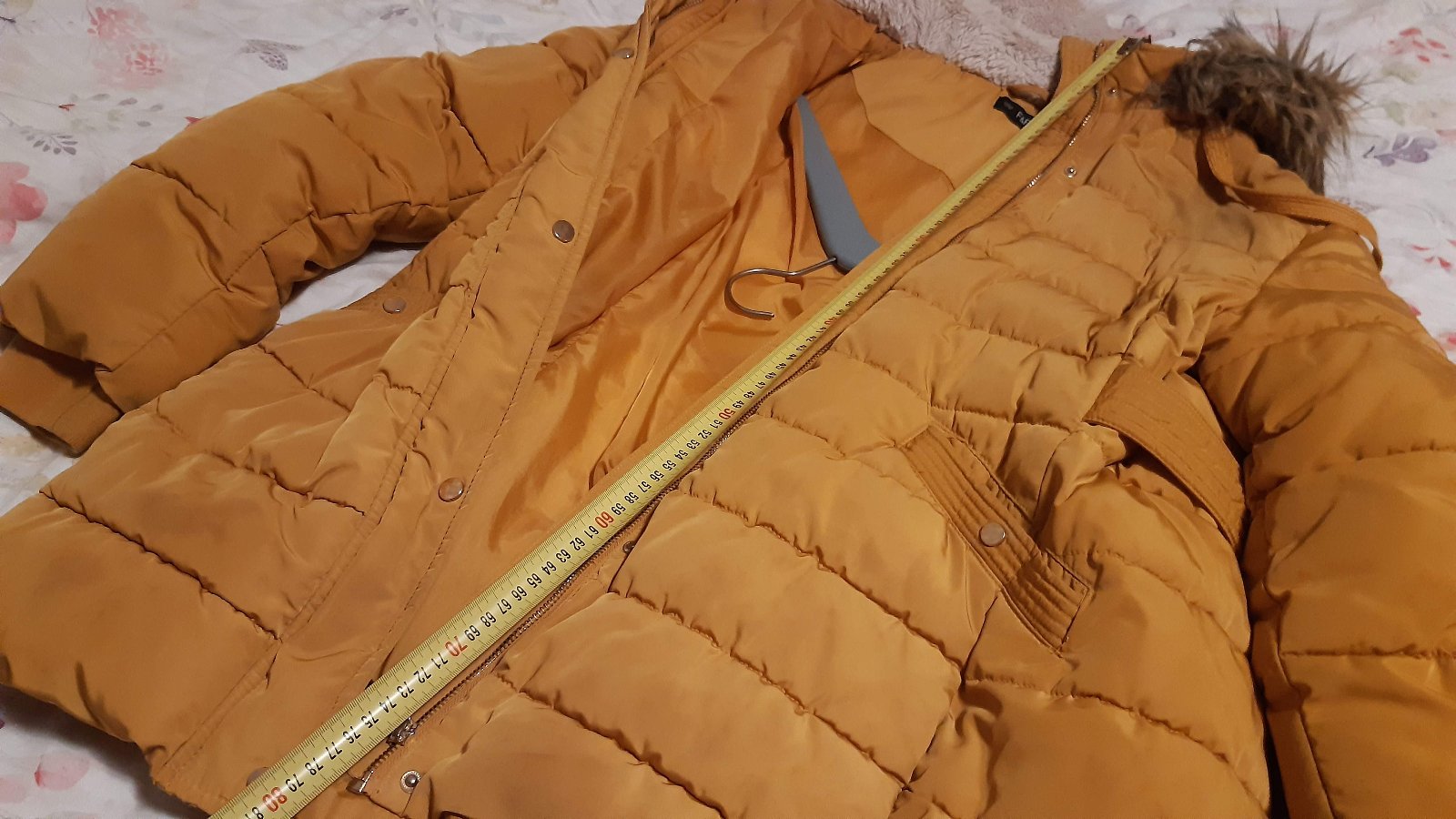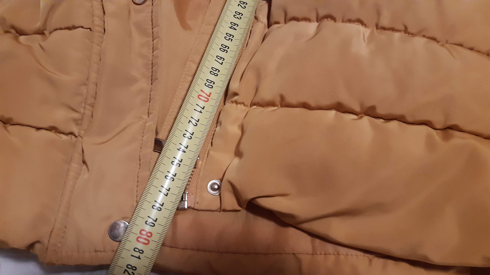 Velmi pekná a zaujímavá teplá bunda. Veľkosť tak 44/46 , šitá na mieru. Nemá žiadne poškodenia. Miery: Dĺžka celková -86cm Dlzka rukáva od krku - 79cm Dlzka rukáva samotného - 65cm Širka cez prsia...