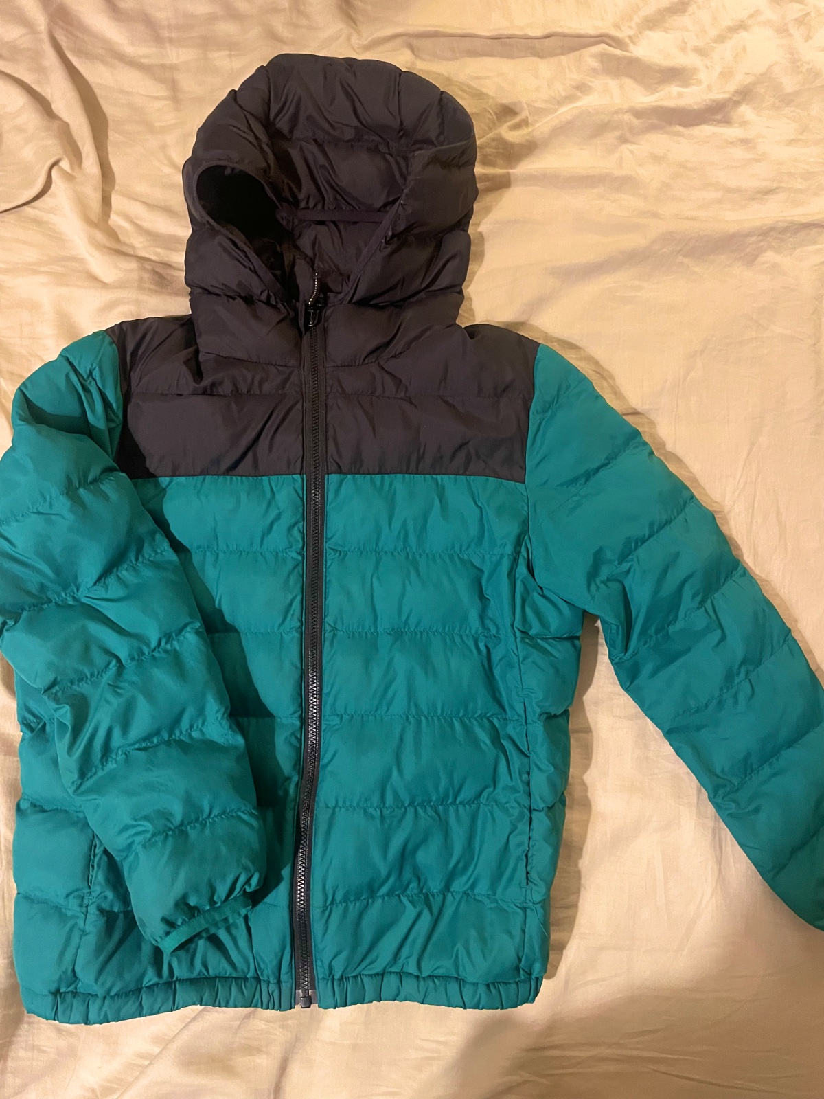 Bunda nosena len mojim synom, kúpené v Tescu, má poškodenia, trochu odrata látka na rukávoch, keď raz spadol. bunda je veľmi teplá, hrubšia,