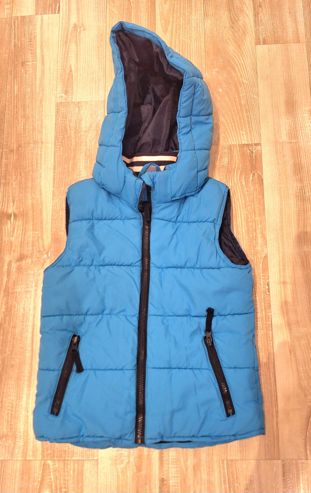 Predám krásnu modrú vestu. Je v super stave, bez poškodení. Kapucňa sa môže dať dole. Zips je funkčný. Veľkosť 122.