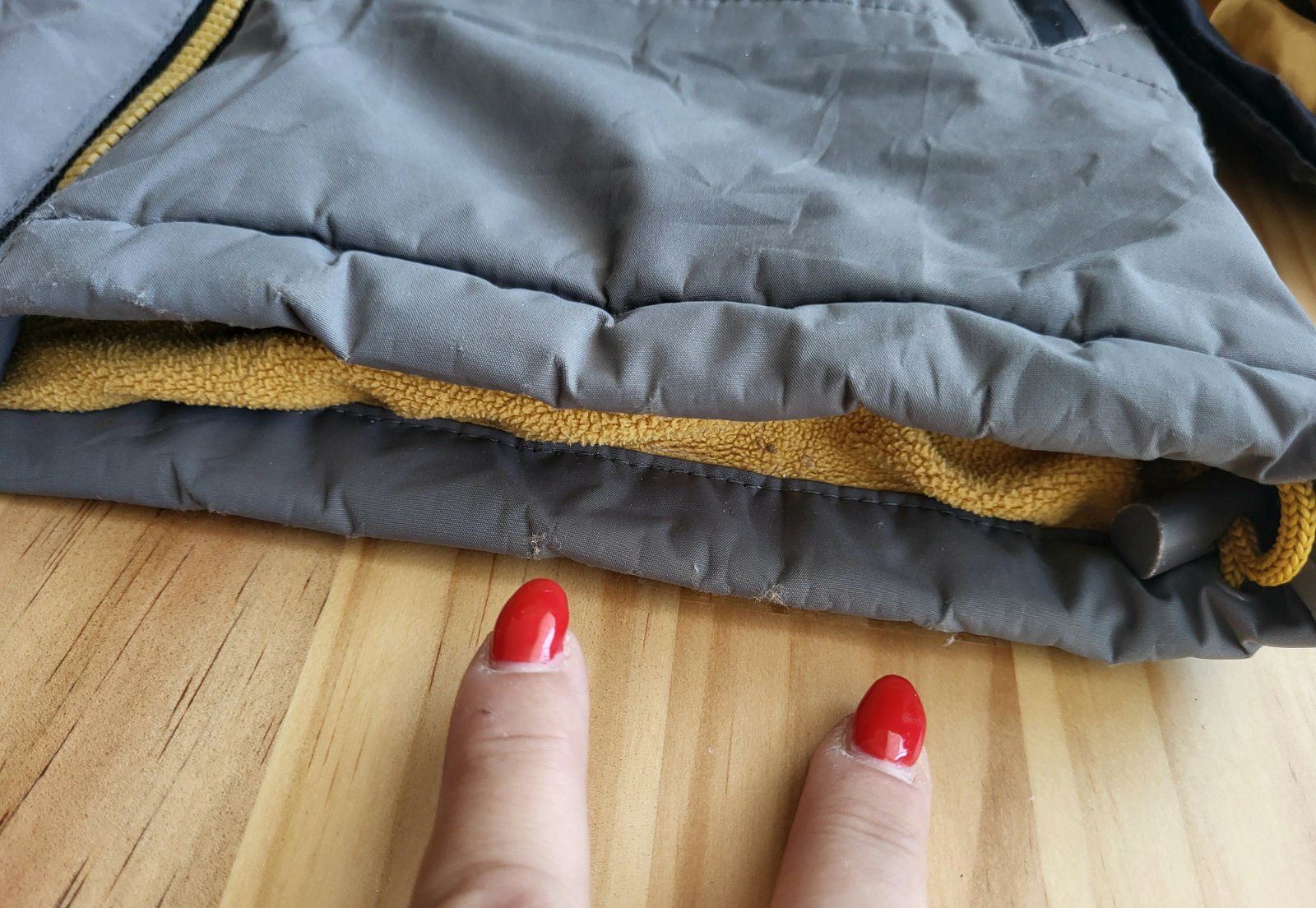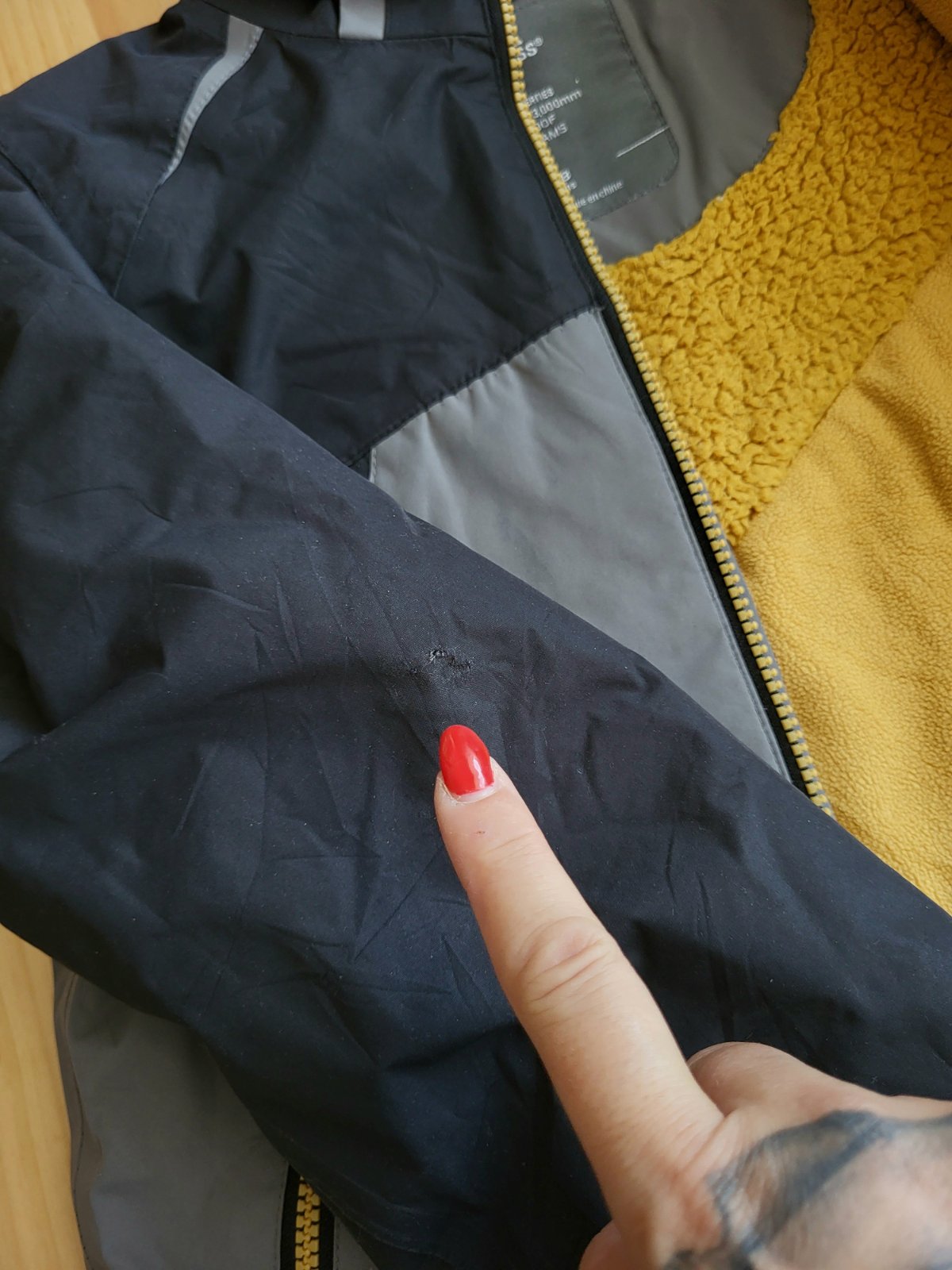 dobrý stav, kvalitná, prepracovaná, pevný materiál, vodný stĺpec 3000mm, vetruvzdorná, lepené švy, bola rada nosená čo vidno miestami na mini predratiach v látke čo vidno viac menej skúmaním(pri koncoch rukávov, na spodku bundy, na ľakti), šuchnuté bežce, veľké náprsné vačky na zips, chýba kapucňa-nie je súčasťou, spodok zvnútra so stiahnutím, pošlem ako balík