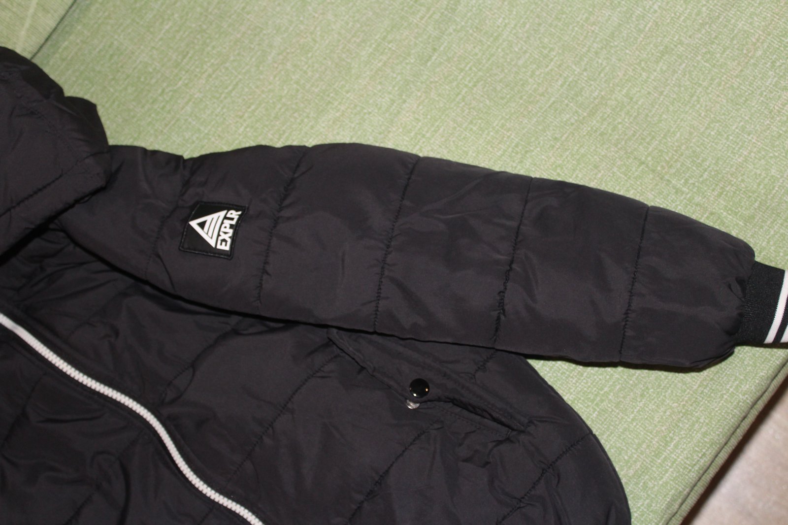 Vo výbornom stave, nosený spolu s inými kabátmi. Odporúčam pre štíhlejšieho chlapca. Je dosť dlhý, aby dobre zakryl driek. Kapucňa je odopínateľná, rukávy zakončené s manžetou. Teplý a ľahký, po opraní rýchlo sa vyschne.