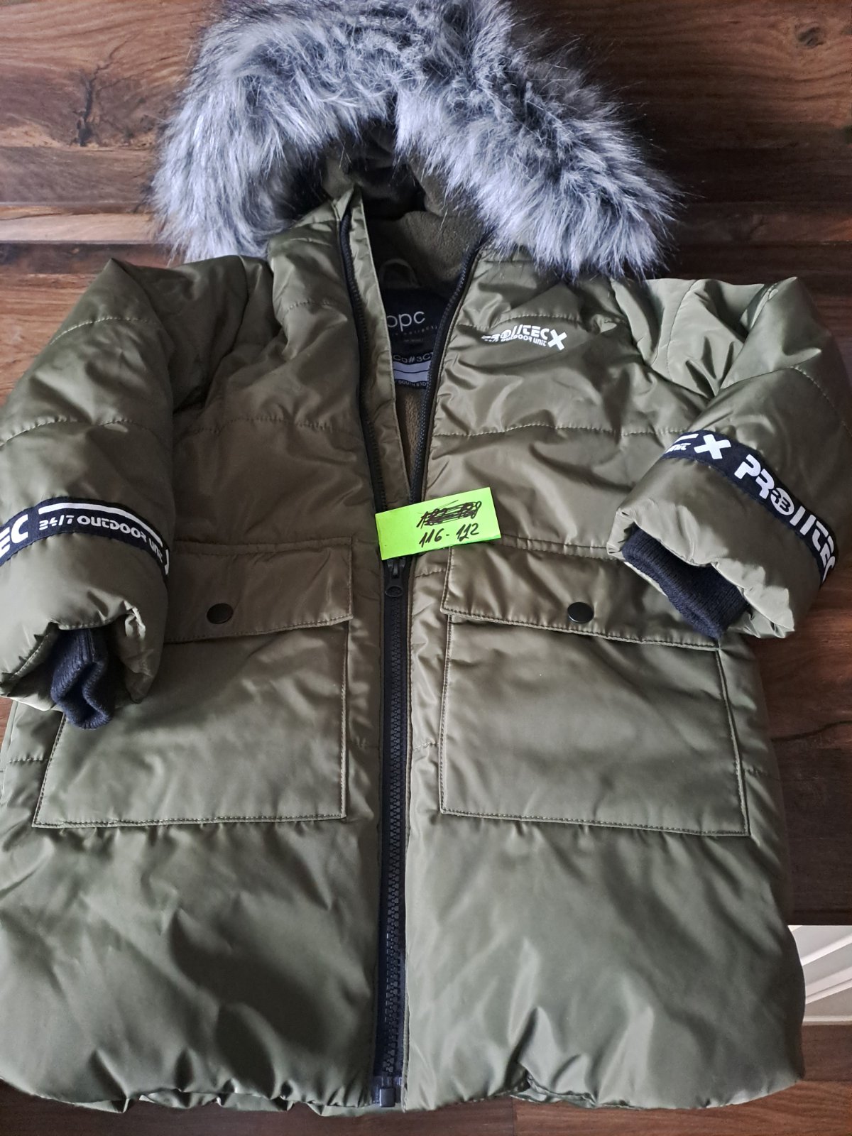Nepremokavá. Kožušina z kapucne,sa dá dať dole. Ako nová. Za mňa velkosť aj 128 . Je písana 116/122.