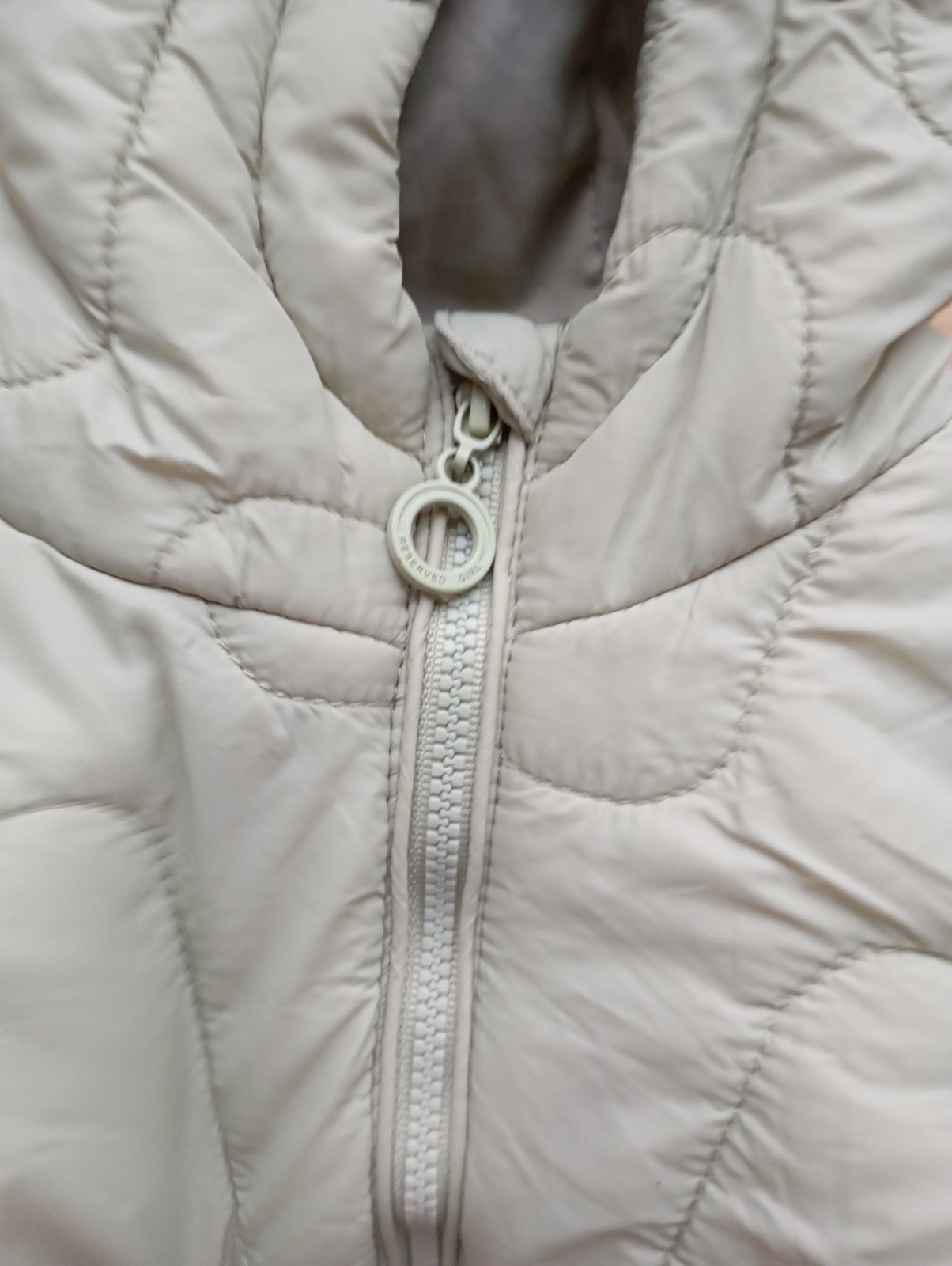 Bez poskodenia,dlzka 62cm,sirka pod prsami 50cm,dlzka rukava od kapucne 70 cm.