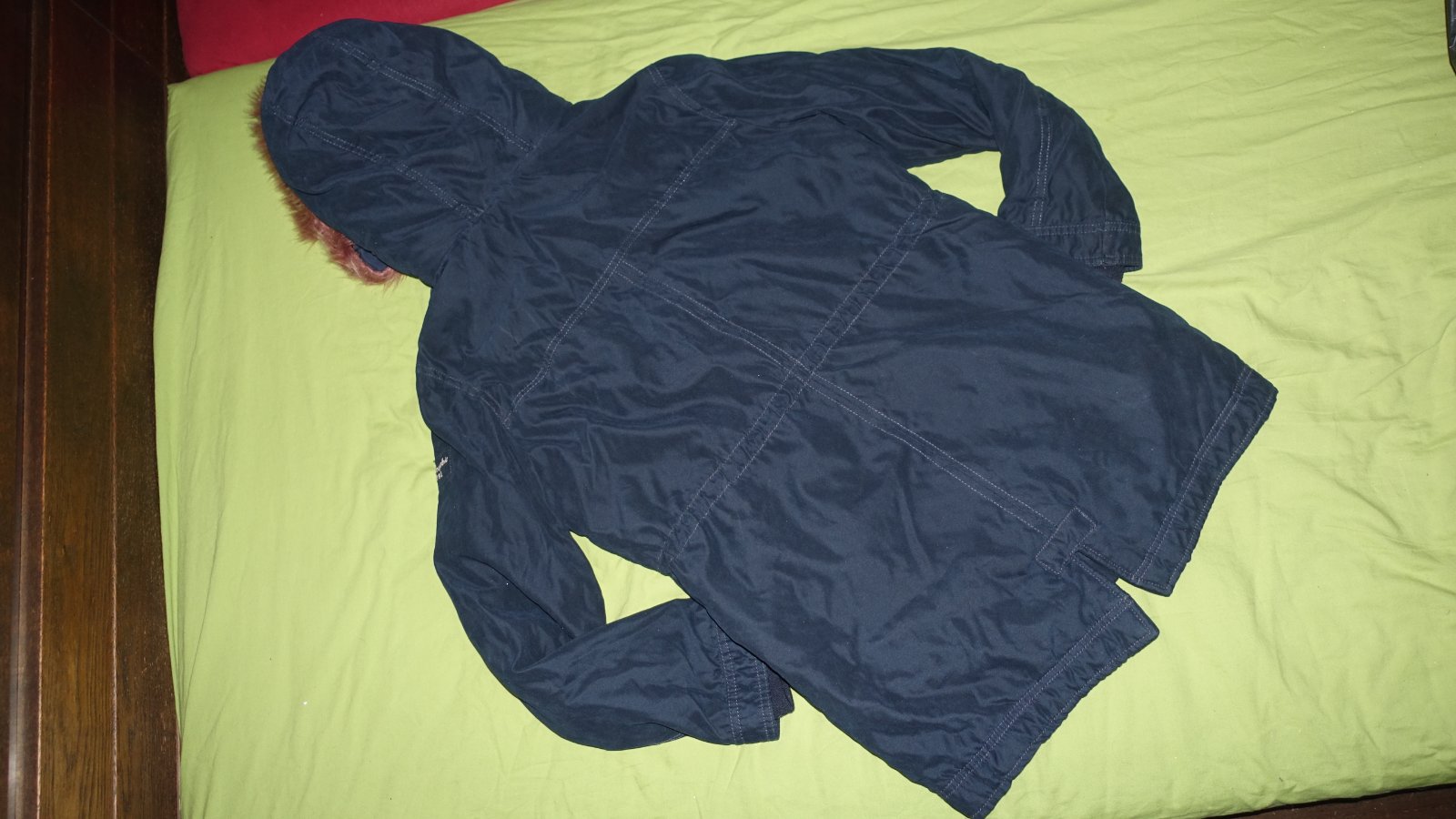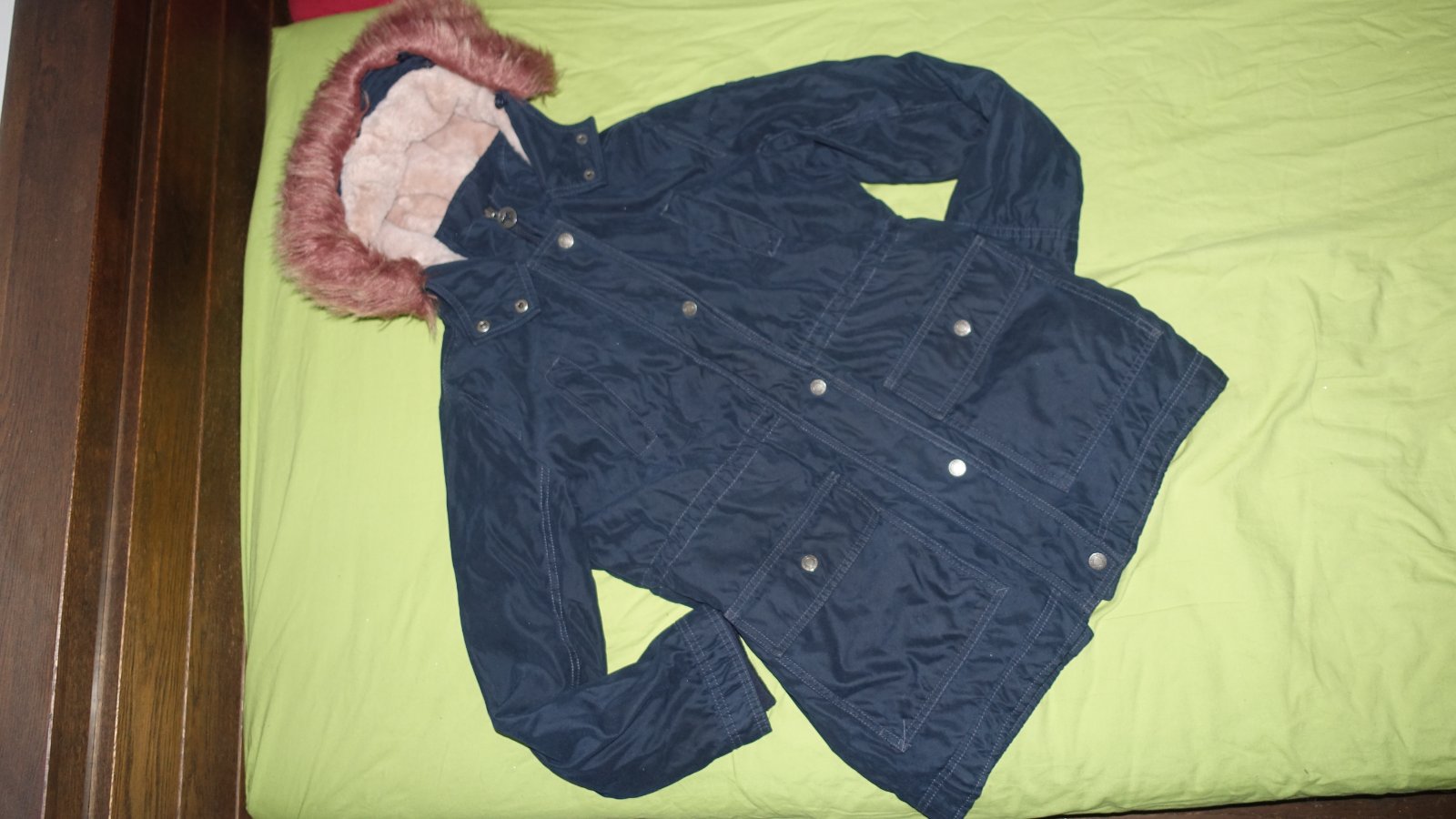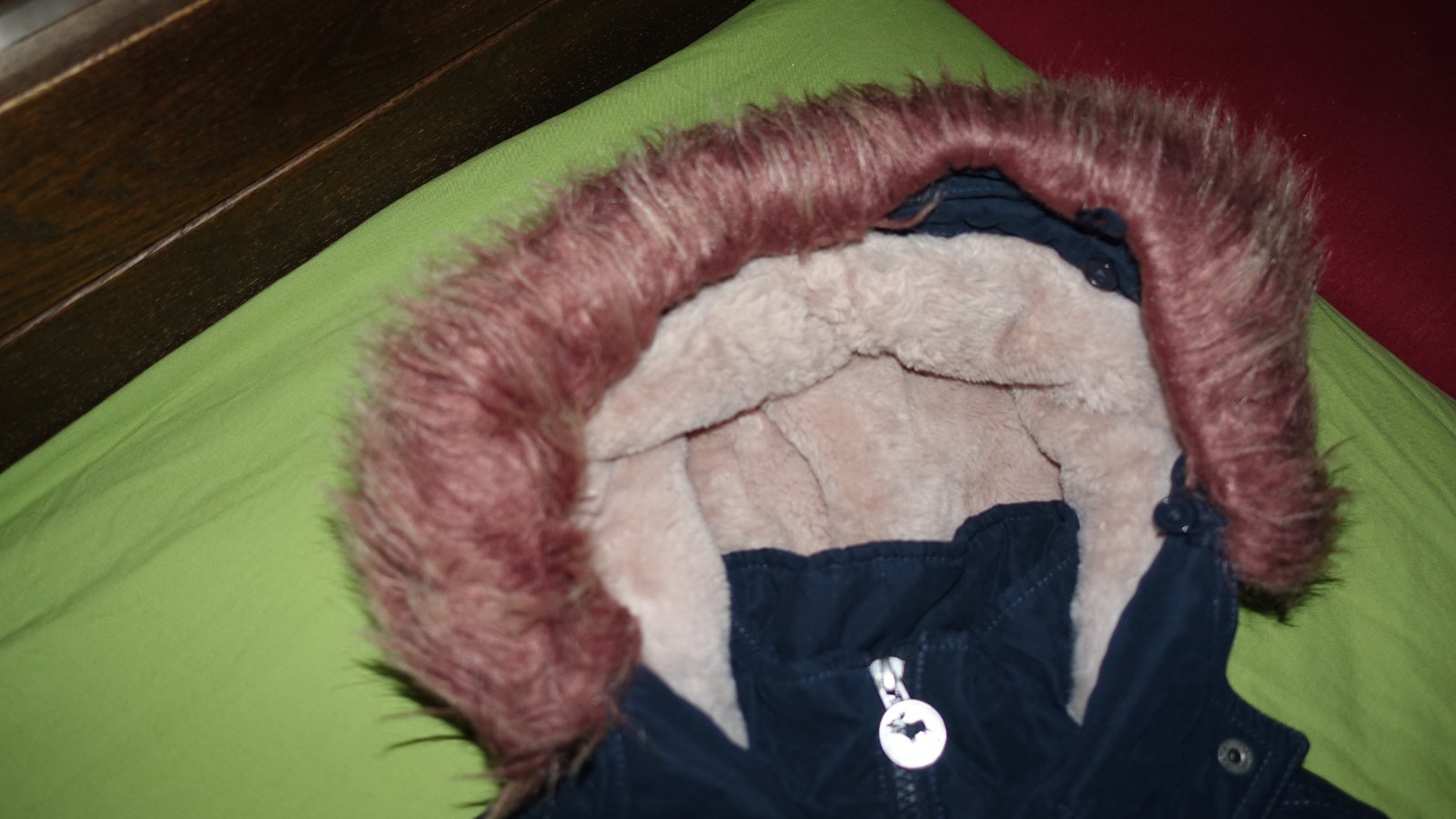 Krasna bundicka vo velmi dobrom stave. Zvnutra ma plys. Kozusinka na kapucni sa da odopnut.