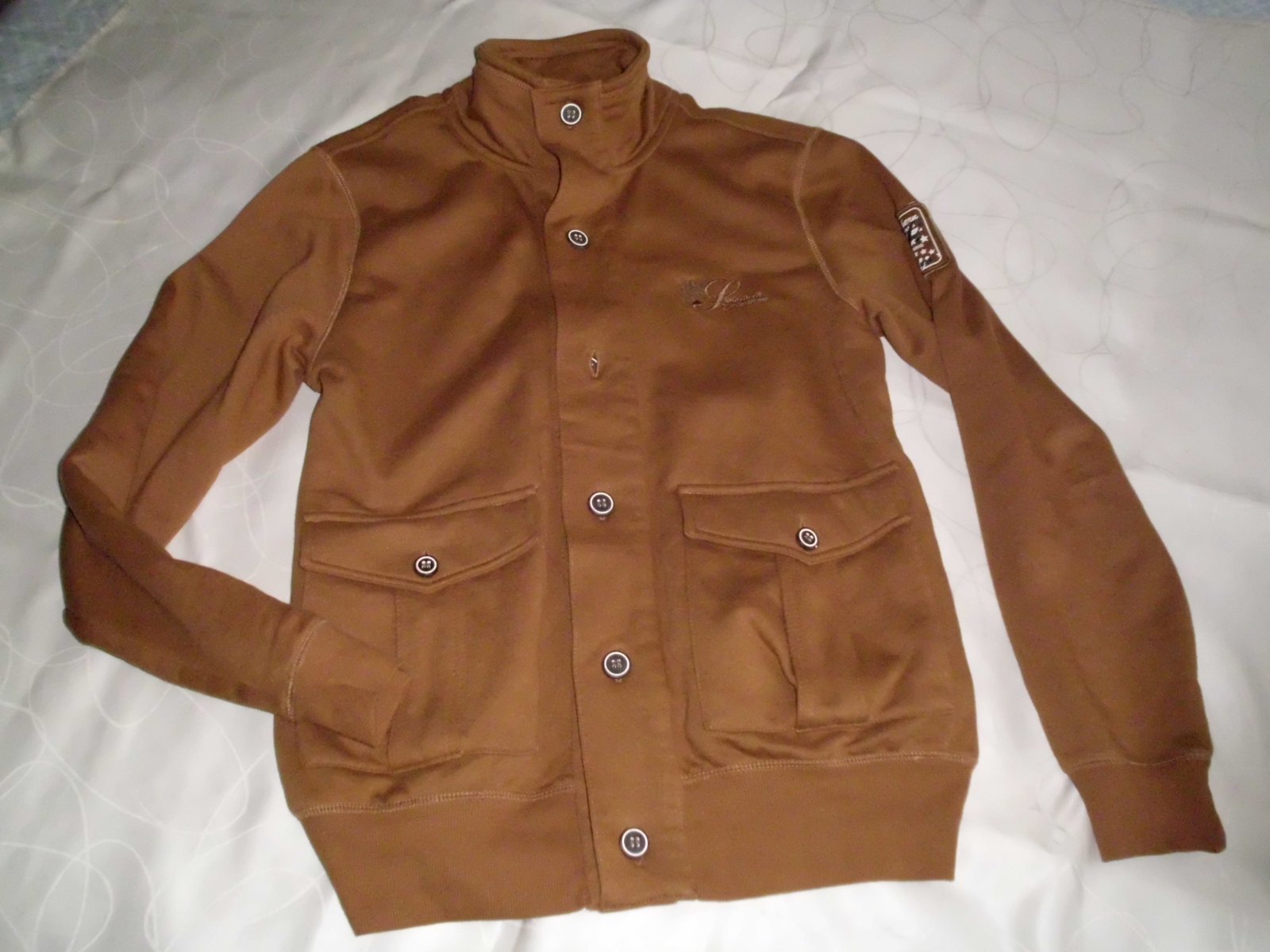 Predám pánsku bundu Selection v.M-L ,miery šírka 56 cm, dĺžka 73 cm, rukáv 69 cm od pleca, 2 vonkajšie vrecká, materiál veľmi príjemný mäkký na jar-jeseň, farba camel-ťavia , nepraná raz oblečená 100% stav