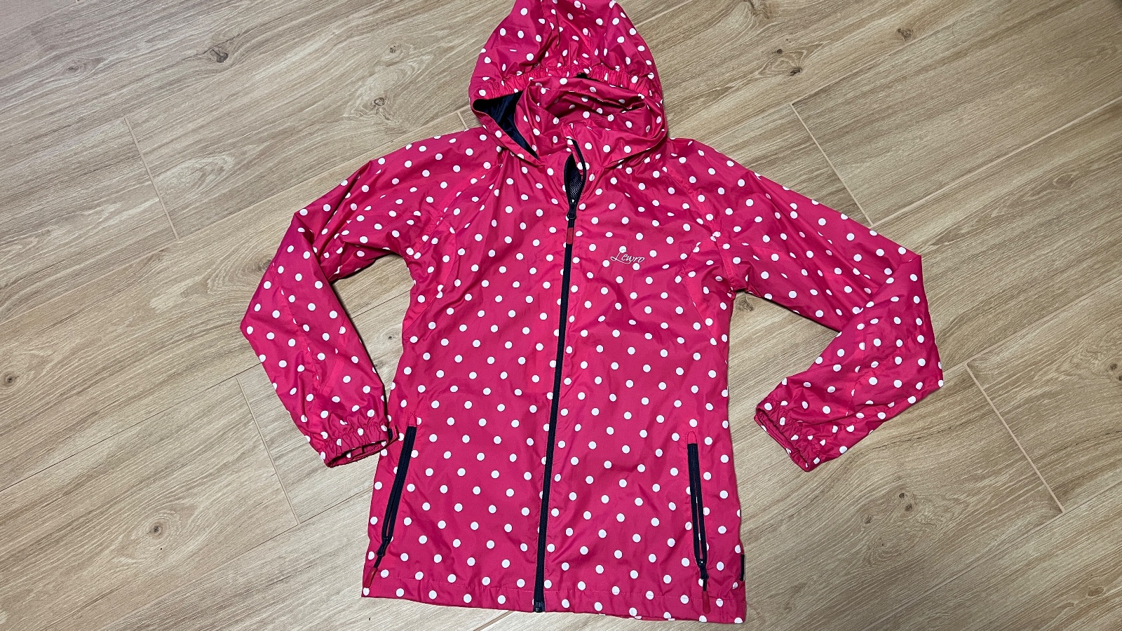 Predám ľahkú nepremokavu vetrovku 152/158. Kapucňa sa dá schovať do golier. Vnútro sieťovina. Dlzka 58 cm Sirka 43 cm Rukav od krku 67 cm