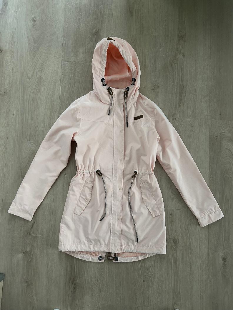 - kapucňa napevno, zapínanie na zips+cvoky, kapucňu je možné stiahnuť šnúrkou, tiež v páse a dole stiahnuteľná