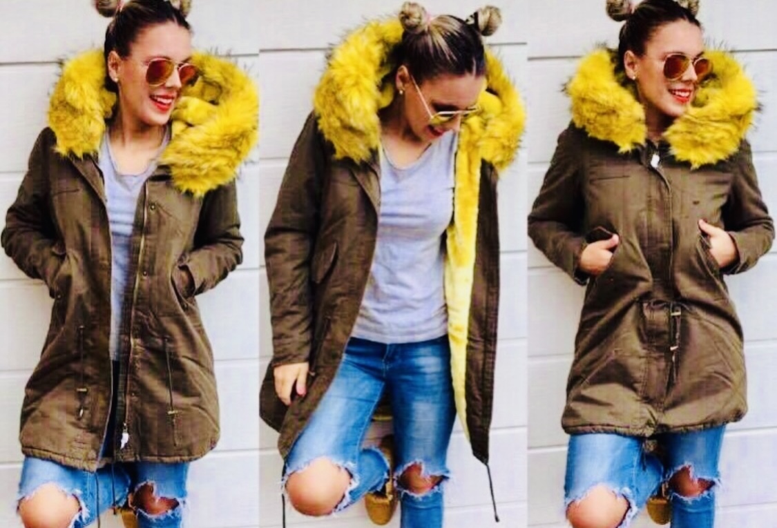 Khaki bunda z jemnou mäkkou kozusinou ktorá je aj vo vnútri bundy