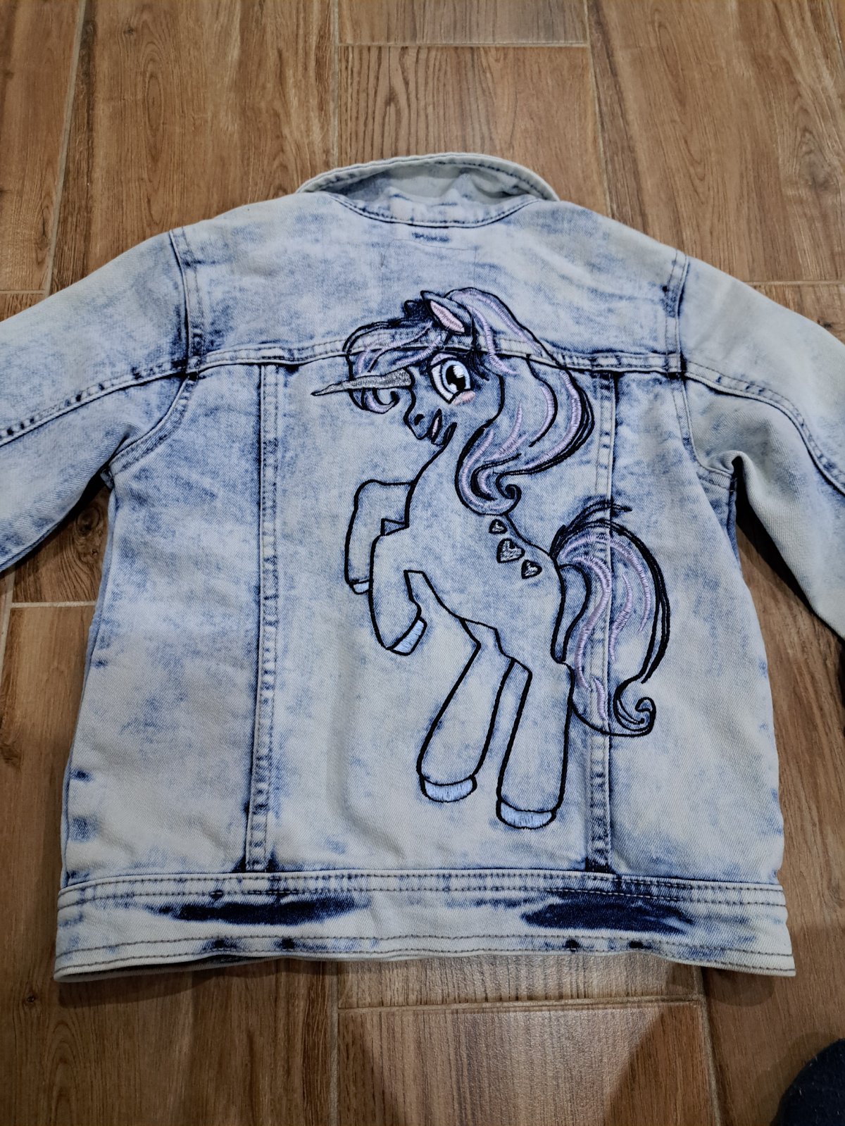 Predám krásnu, nepoškodenú frajerskú riflovku. Obrázky vyšité. Ako nová.