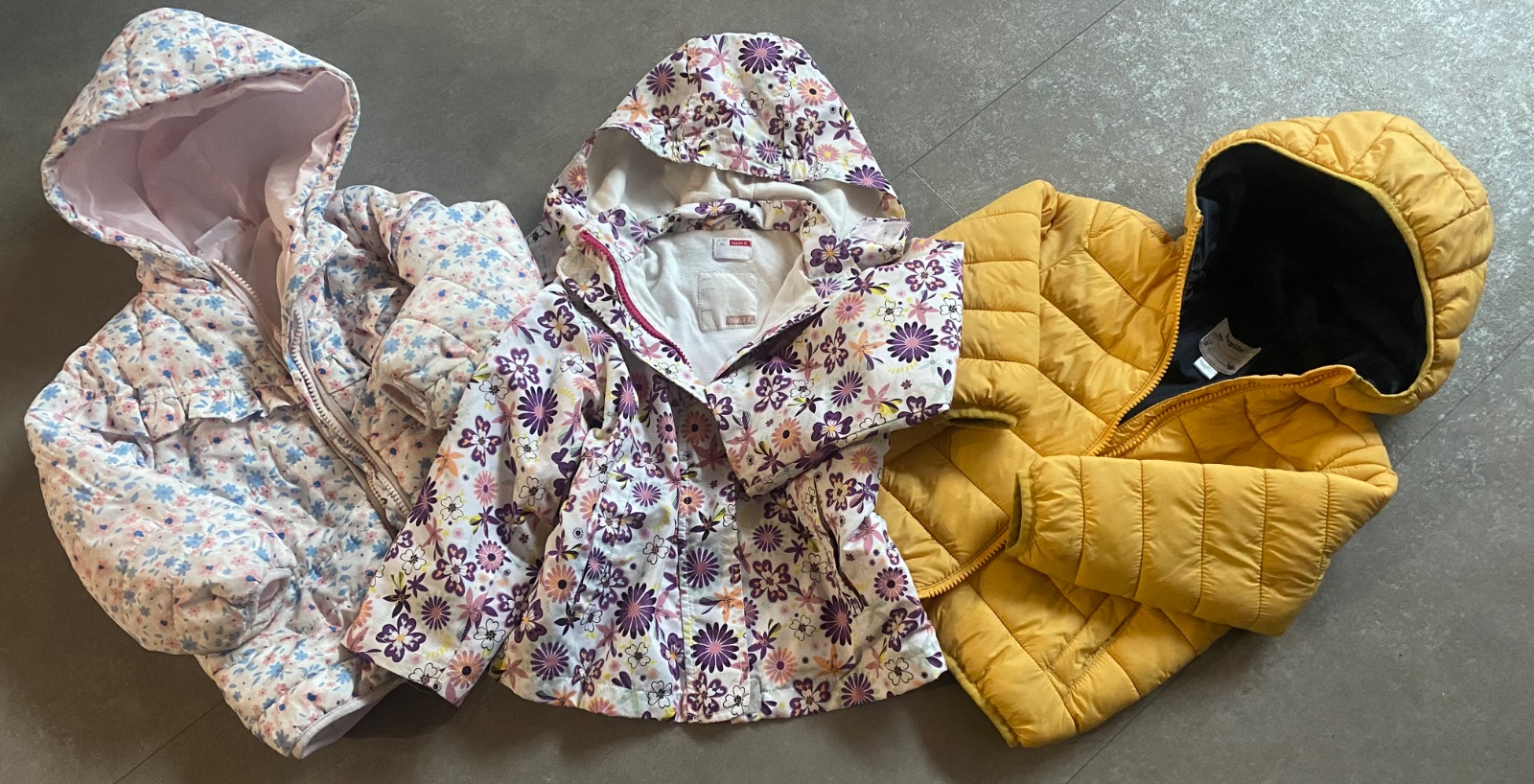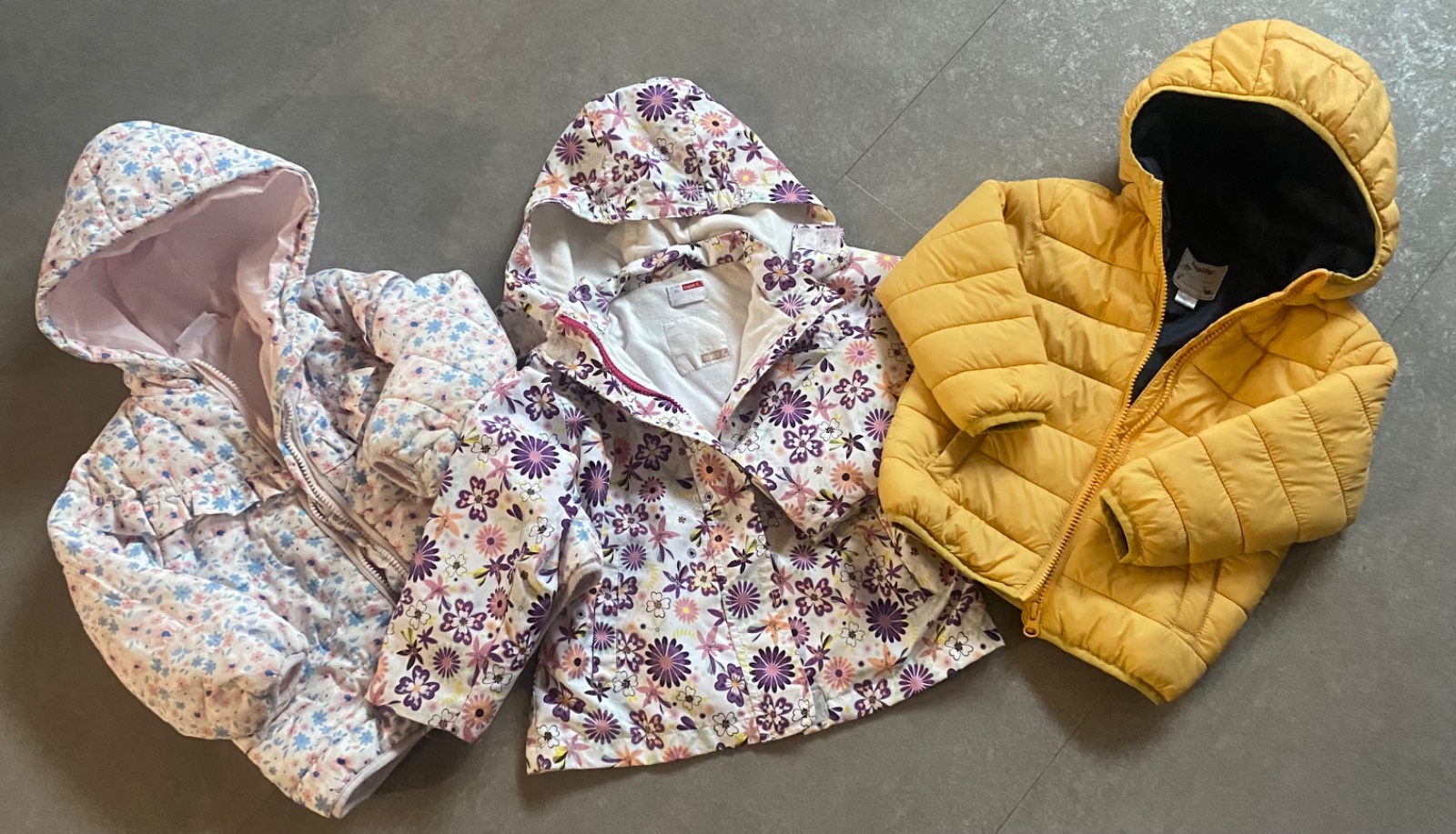 Bundičky v peknom nosenom stave. Na žltej píše 92 ale je vačšia ,sedí lepsí na veľkosť 98. Vhodná aj na zimu.