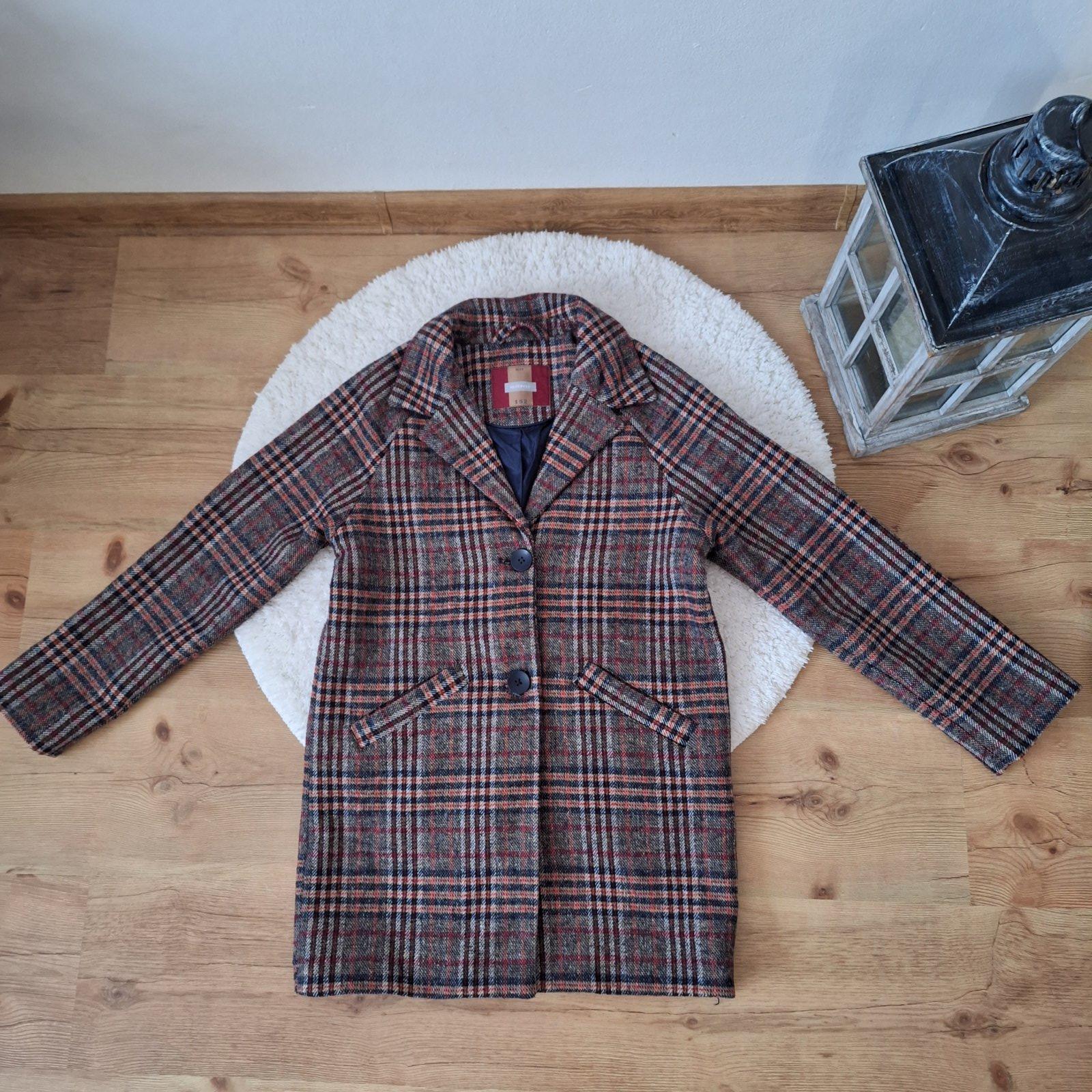 Krásny horčicovo károvany kabátik je makucky a pohodlný Miery na foto