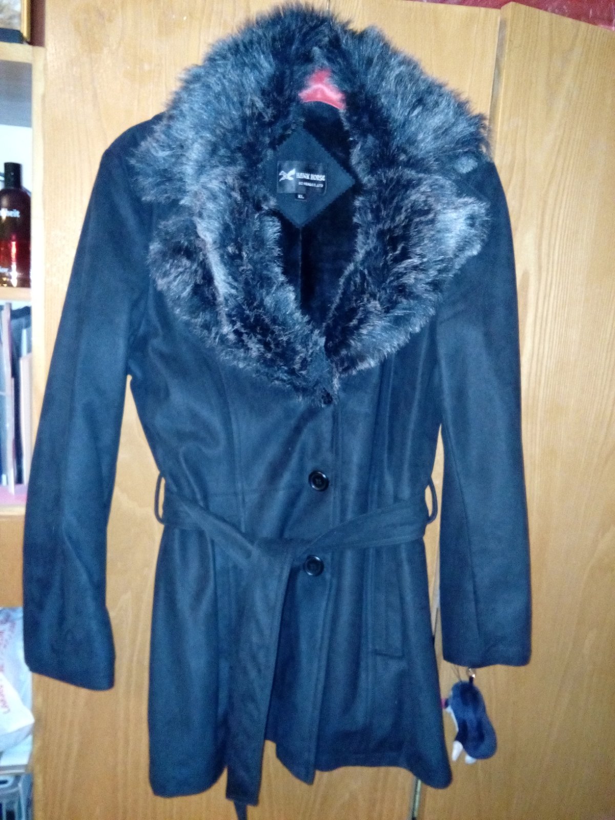 Bunda s opaskom, kožušínovym golierom