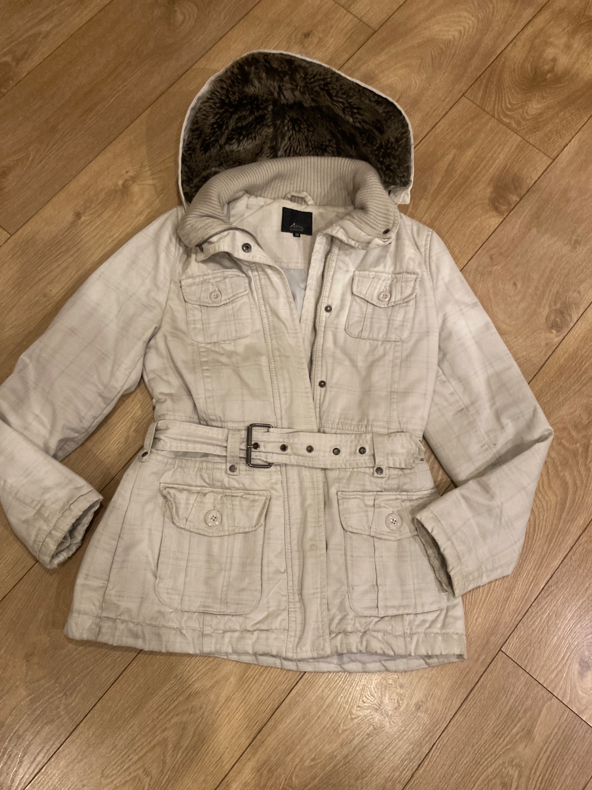 Predam zimnu bundu s odnimatelnou kapucnou raz oprata ako nova kupena v Tchibo vel.38 rozmery na fotke bezovej farby