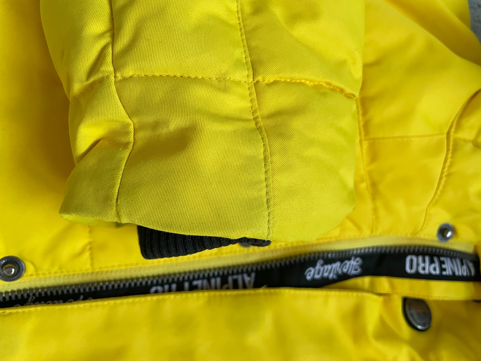 Krásna a super zachovala bunda na zimu. Alpine Pro v krásnej žltej farbe, veľkosť 140 (146 síce píšu, ale je skôr menšia). Na rukávoch trocha zašmudlaná, to sa už nedá celkom vyprať.
