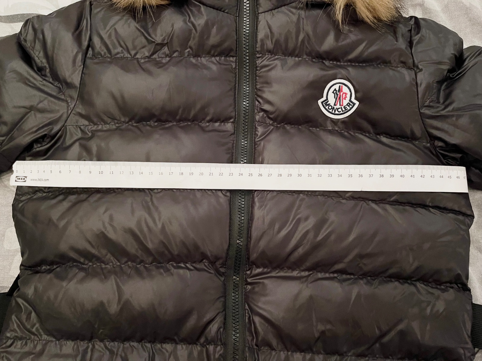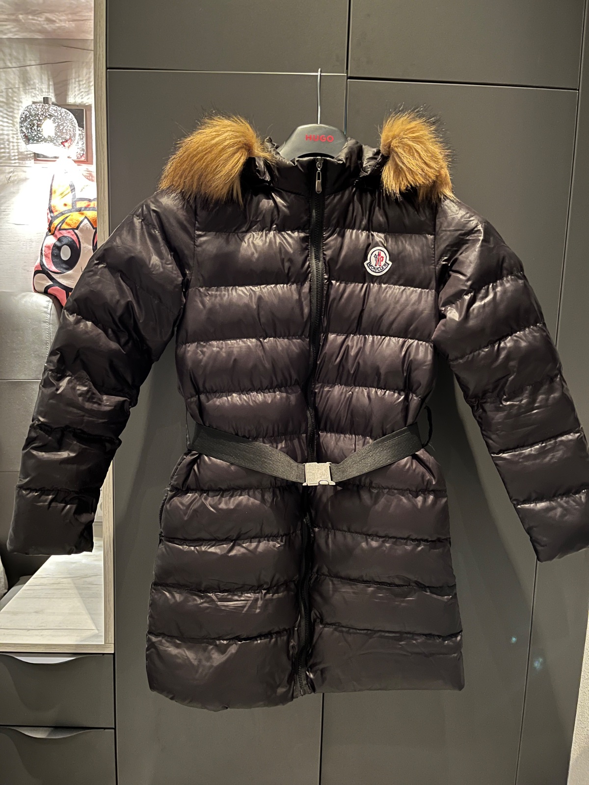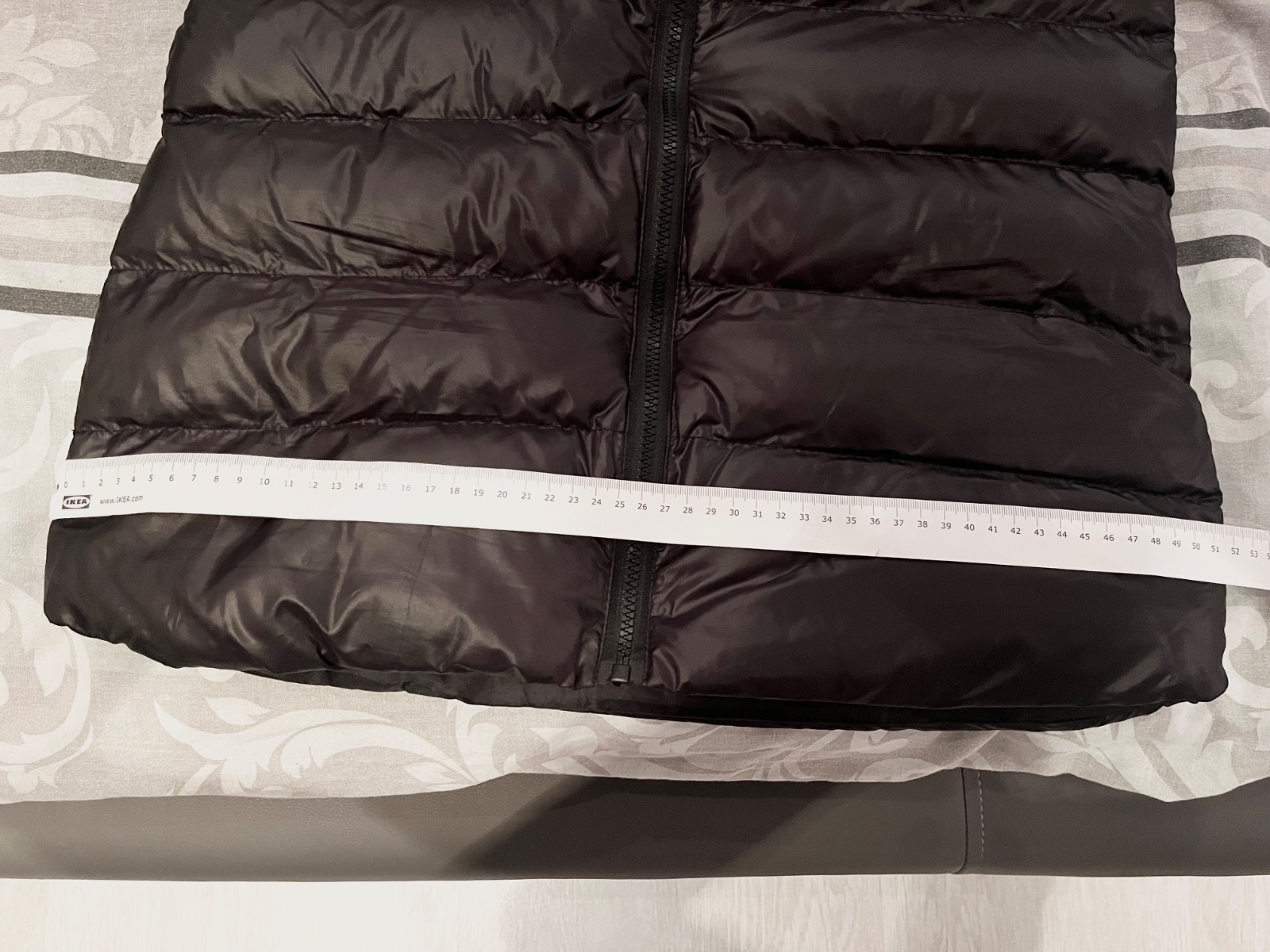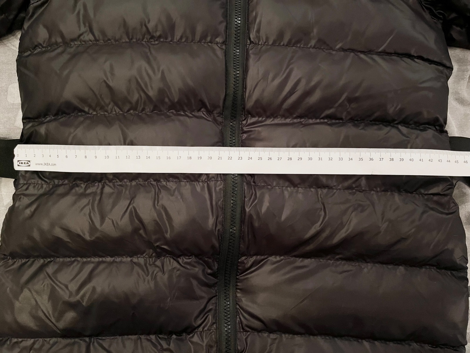 Predám novú čiernu lesklú zimnú bundu s opaskom,veľkosť písaná M,ale je to skôr menšie M alebo S. Rozmery sú na fotkách.