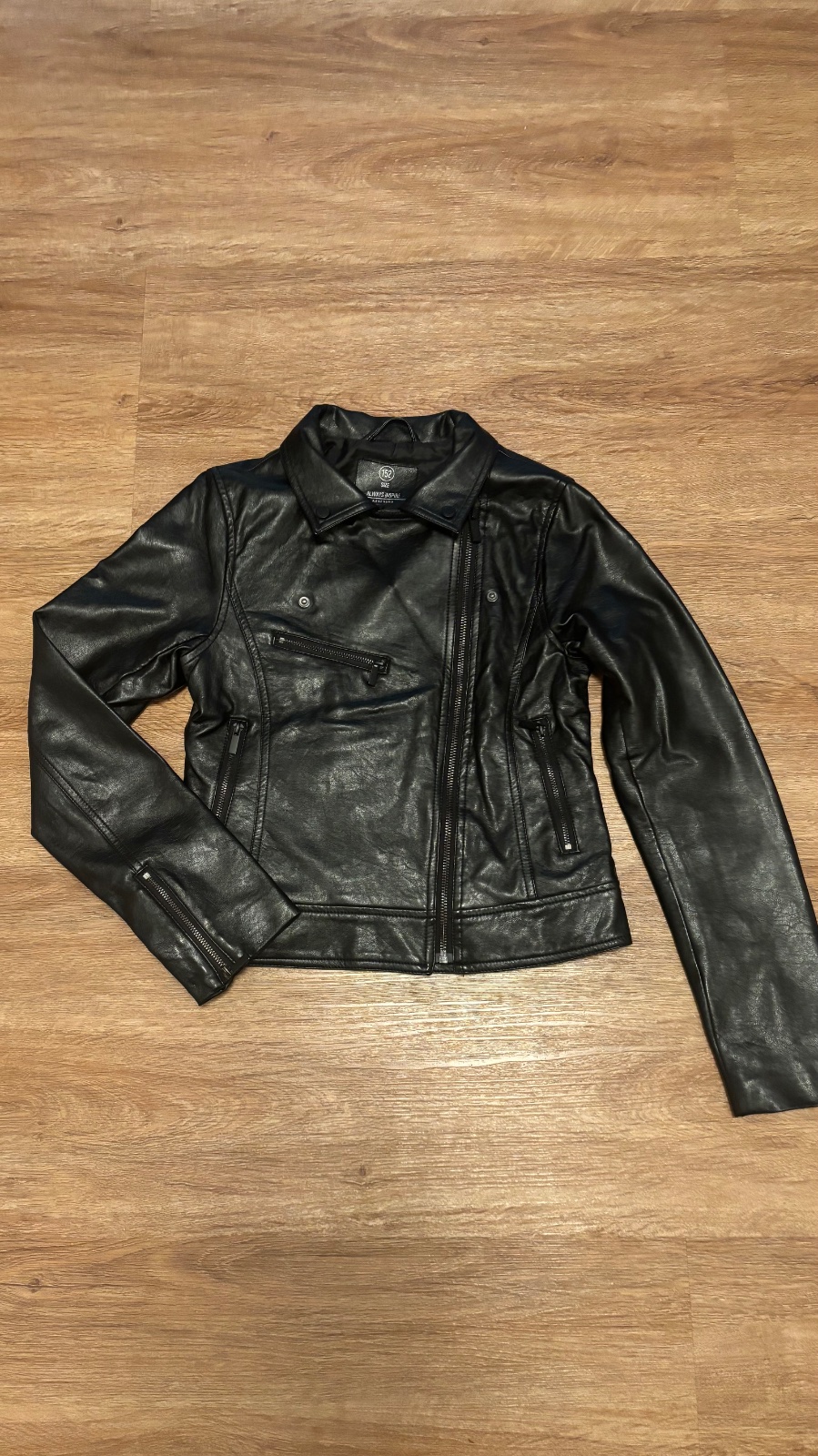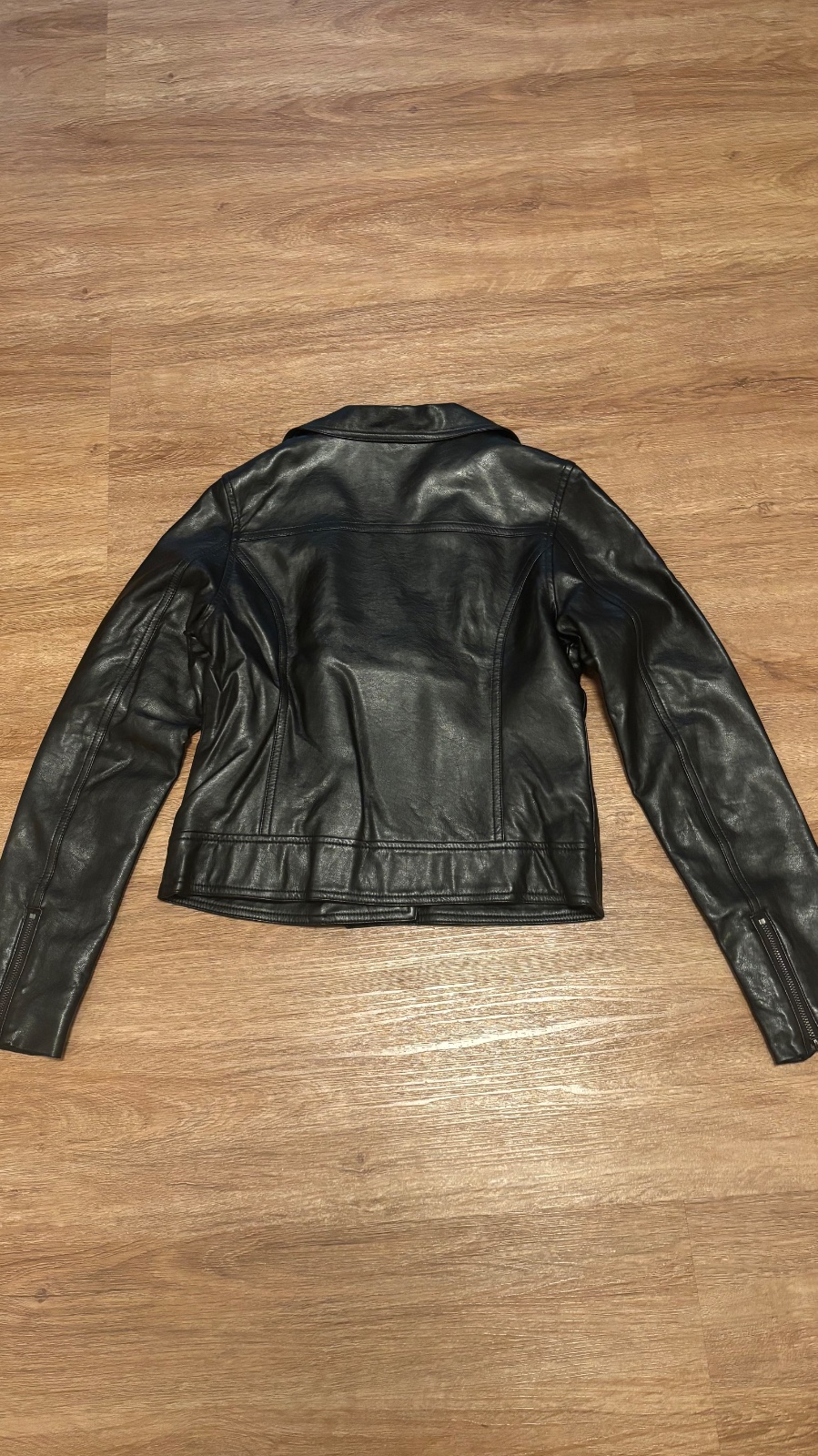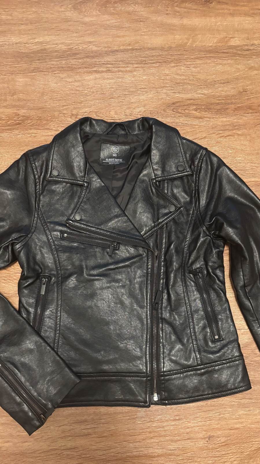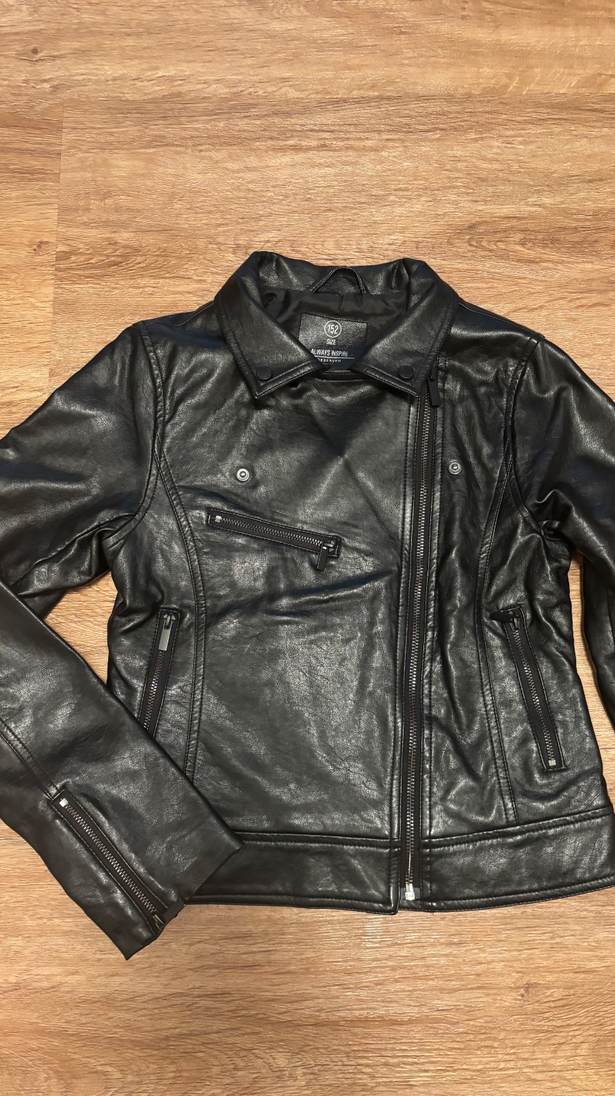 Túto bundu mala dcéra presne jedenkrát na sebe, takže úplne ako nová. Rozmer zapnutej bundy: cez prsia 45 cm, dĺžka 50 cm, rukáv od ramena 59 cm. Bunda je veľmi príjemný mäkkej koženky, Preto nie j...