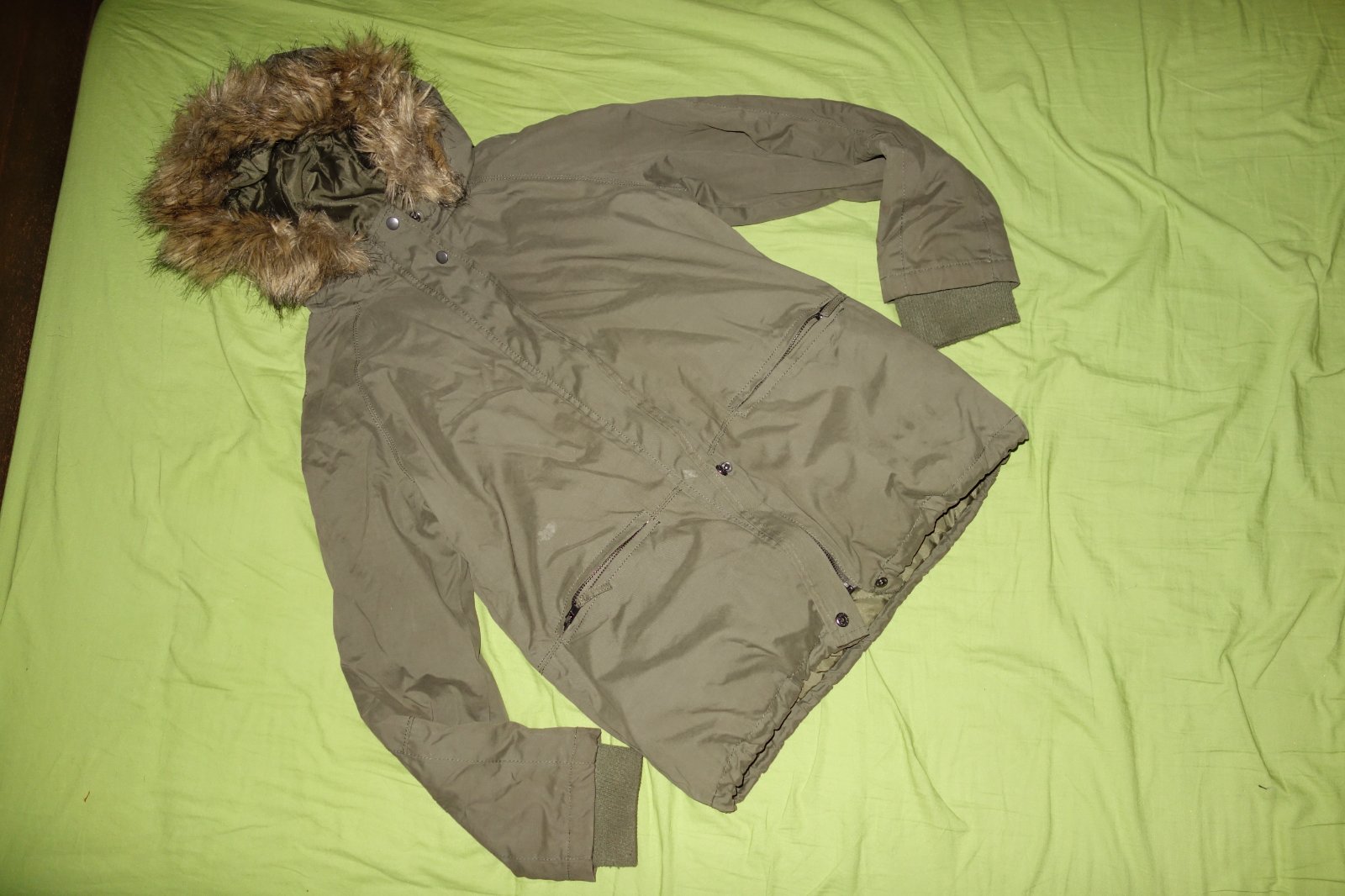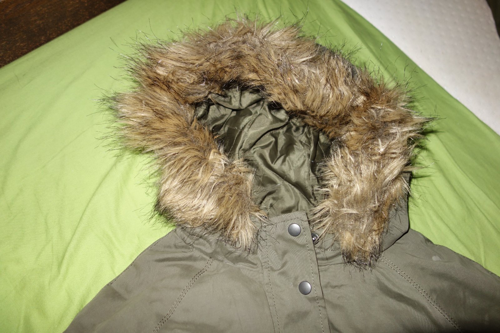 Krasna bundicka vo velmi dobrom stave. Je zimna, ale skor do miernej zimy. Zvnutra ma kozusinkovu vesticku, ktora sa da odopnut a da sa nosit ako bunda, tak aj vesticka zvlast. Na fotke je ufulana, uz je oprata.