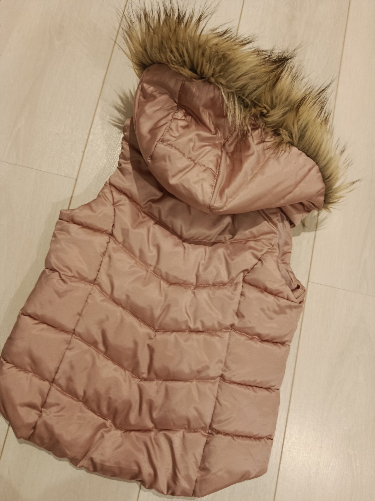 122/128, odnímateľná kapucňa,na cvoky a suchý zips, +náhradná kapucňa nakoľko sme mali vestu takú istú len dcérka ju niekde nechala a kúpila som takú istú druhú...