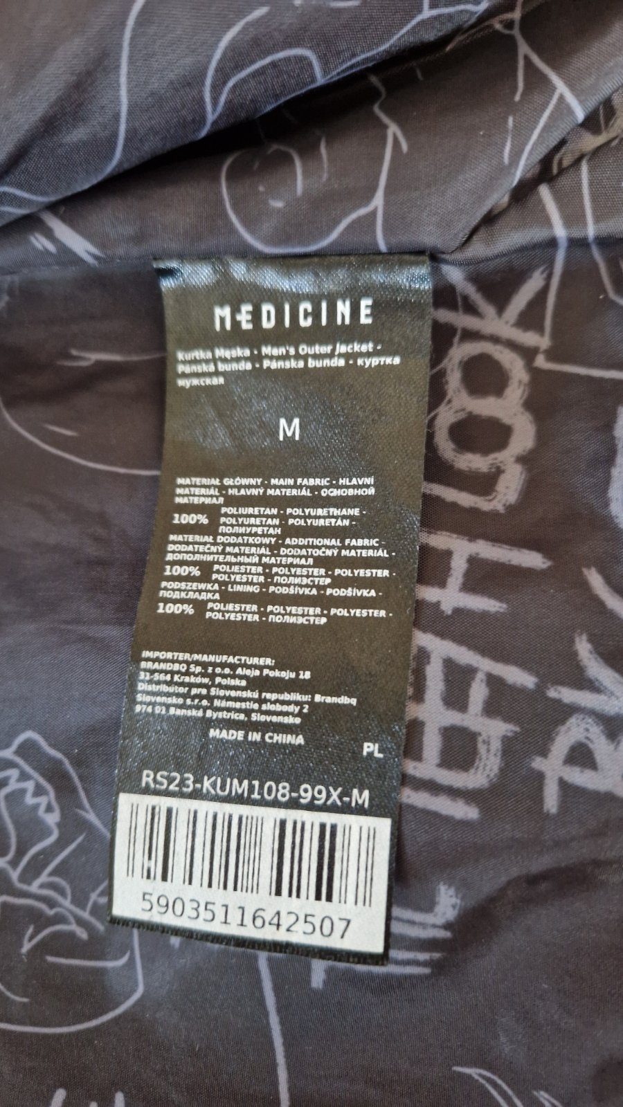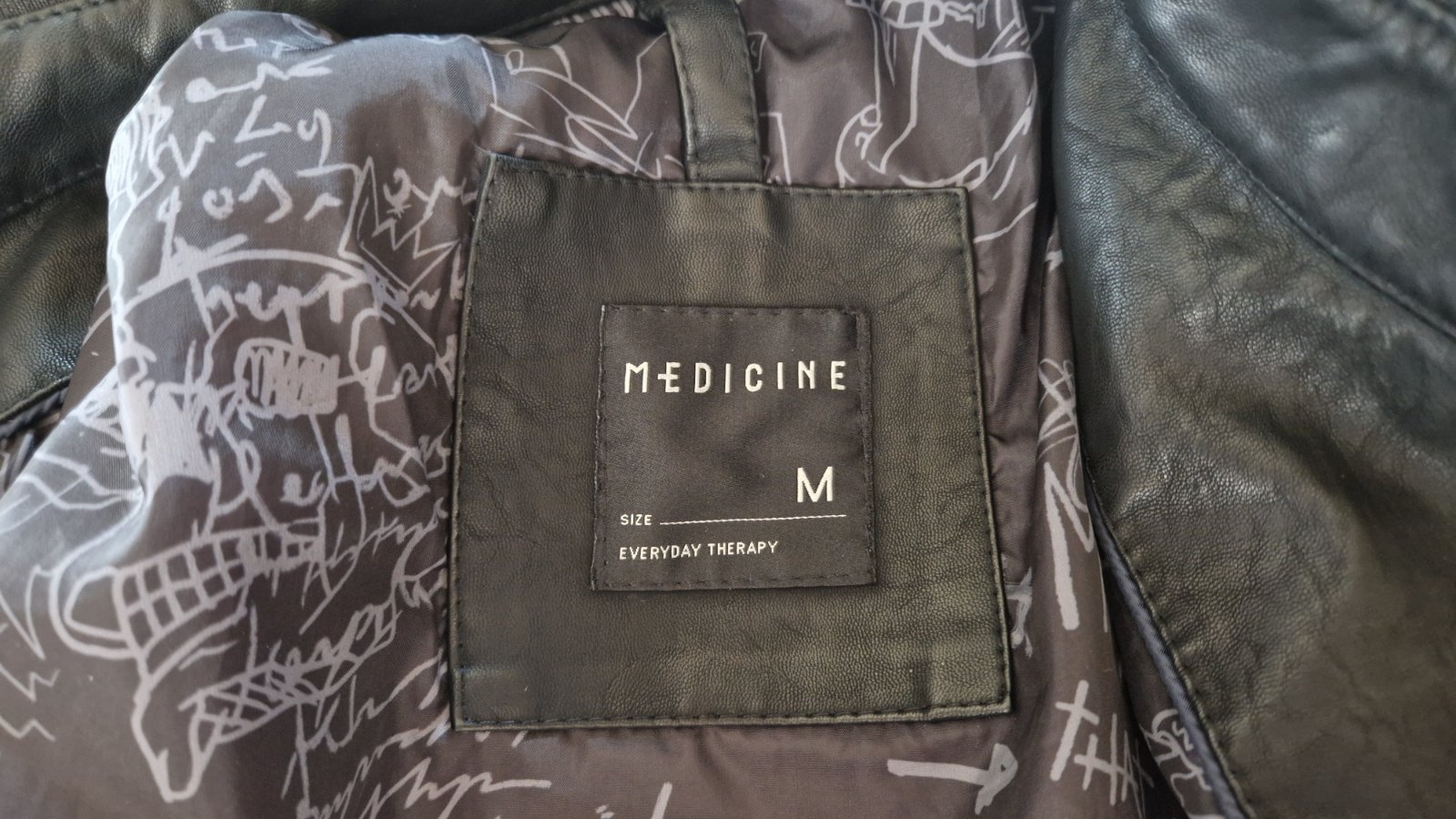 Top stav kožená bunda Medicine, pár x oblečená. Dĺžka chrbta 70, šírka 54x2, dĺžka rukáva od pleca 67, vnútorná dĺžka rukáva 49cm. K cene plus poštovné podľa taríf SP.