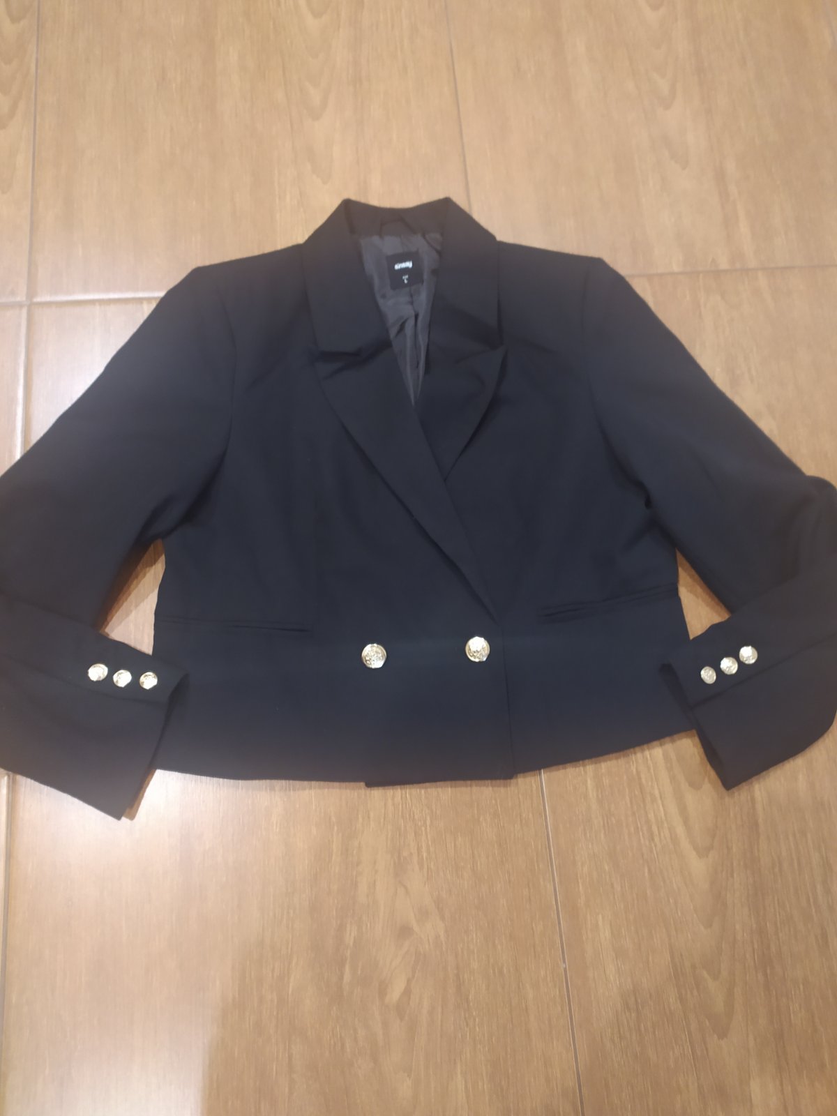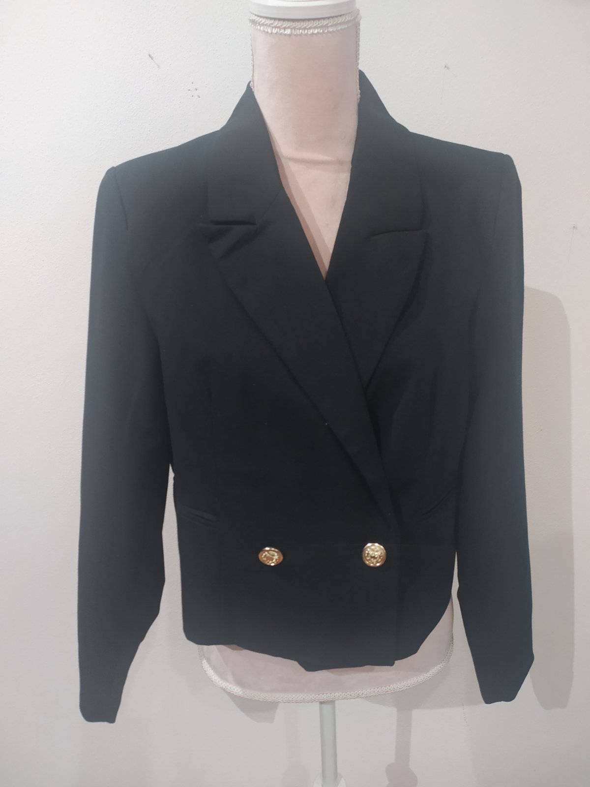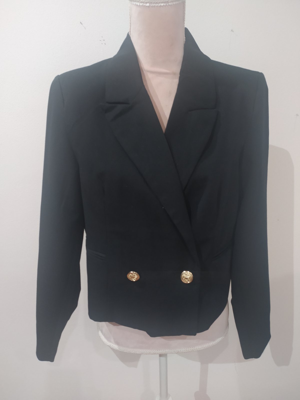 Krátky kabátik na prechodné obdobie,podsity,doplnený zlatými gombíkmi Dl 50,šírka 49*2, rukáv 62cm A4,v
