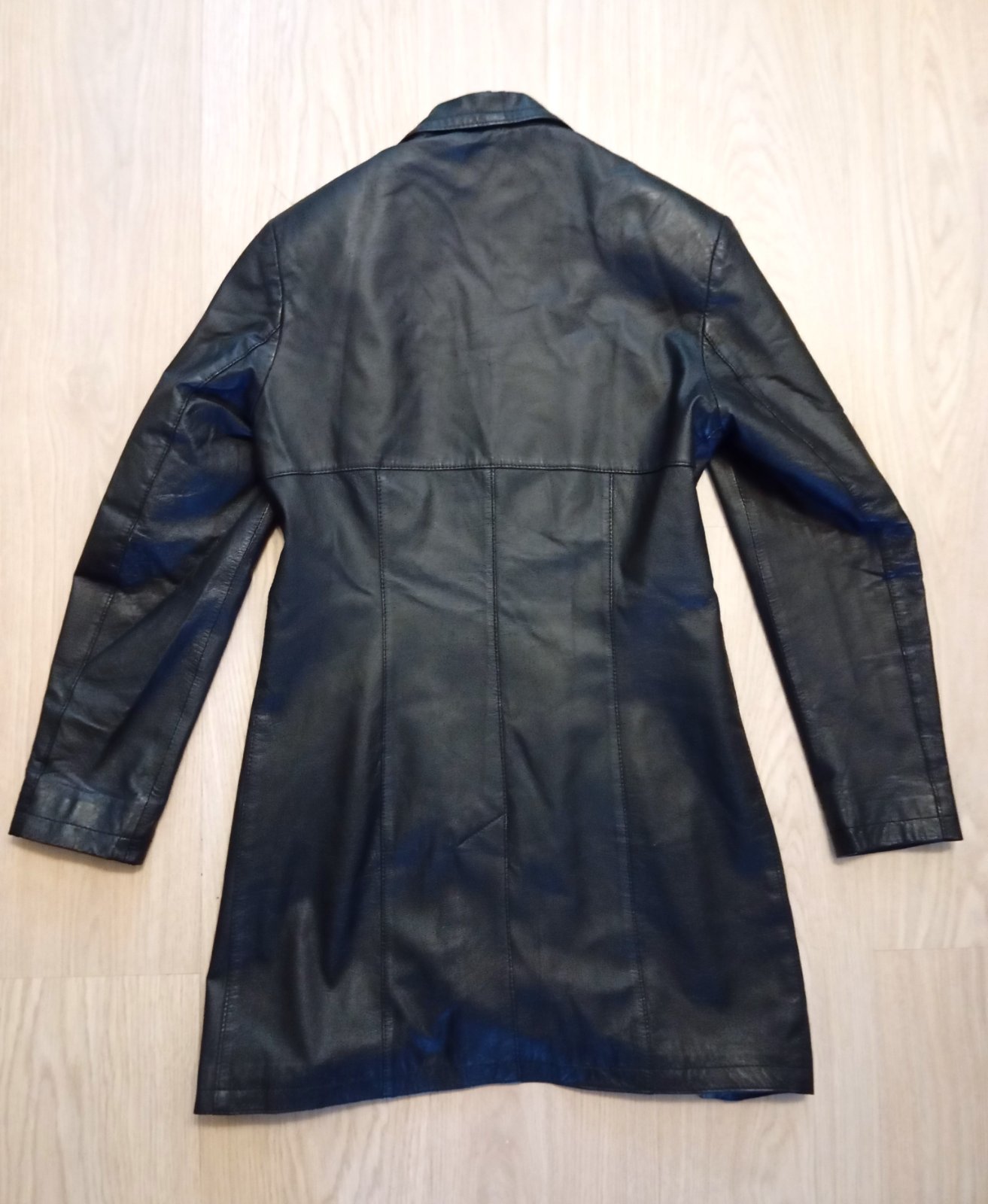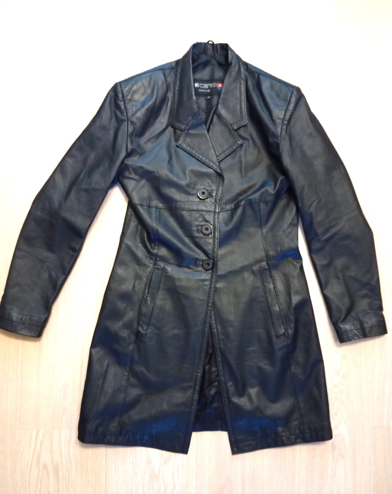 Dámsky čierny kožený kabát K CERO, písaná je veľkosť 42 ale hodí sa skôr na 36/38. Pekne formuje postavu.