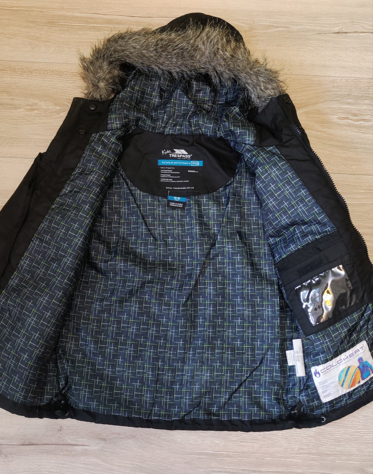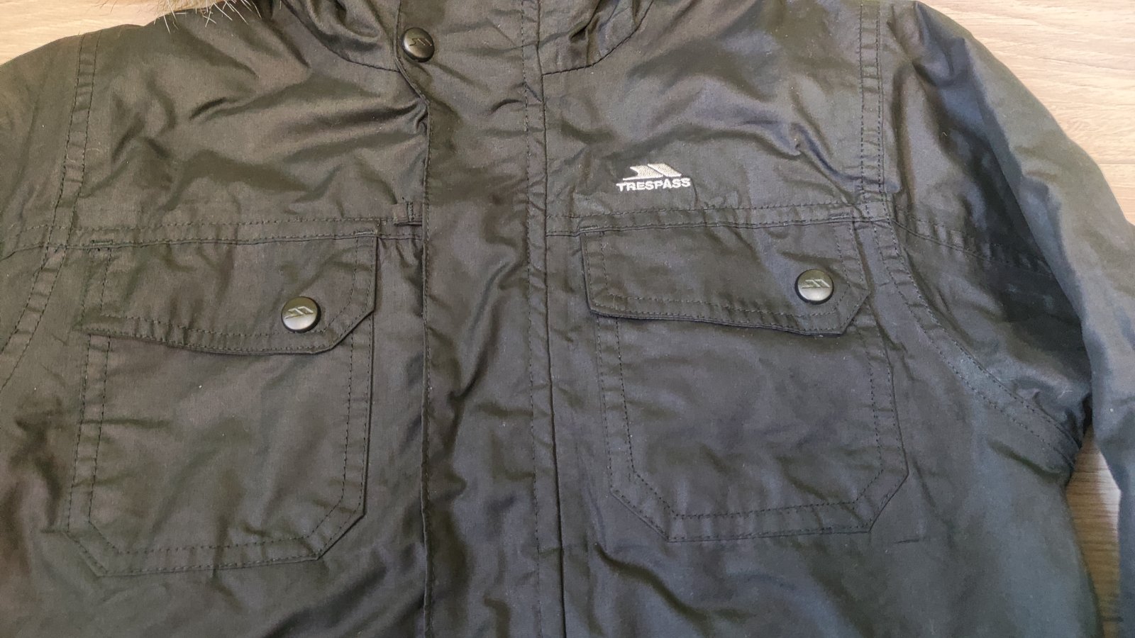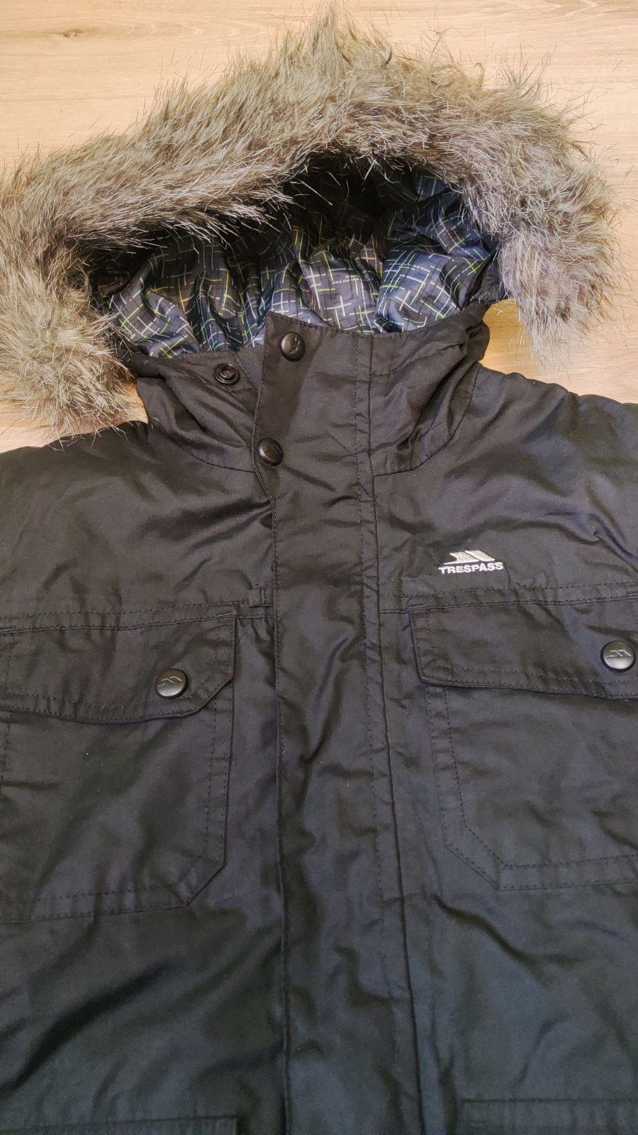 Veľmi zachovalá bundička na 5-6 rokov, vode a vetruodolná. Pekná čierna farba (fotky skresľujú). Miery: šírka 42 cm, dĺžka rukáva od ramena 47 cm, celková dĺžka 56 cm.