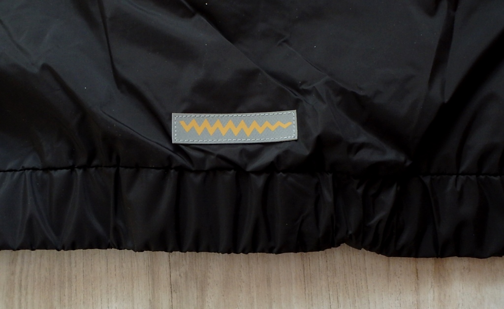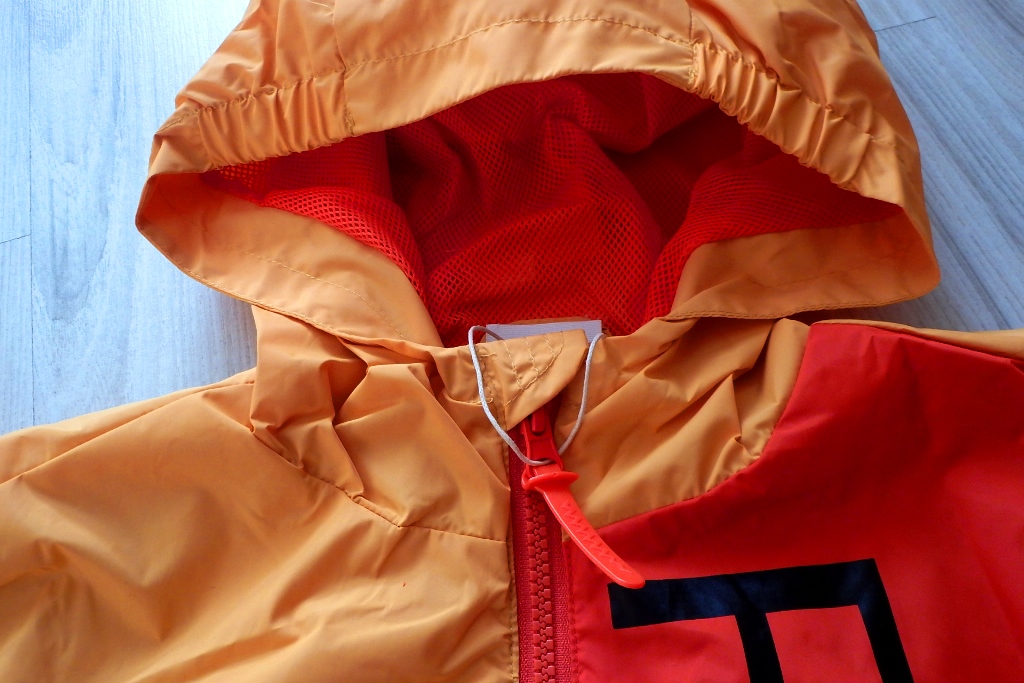 Konce rukávov a spodok vetrovky má patent - gumu. Má žltú podšívku.
