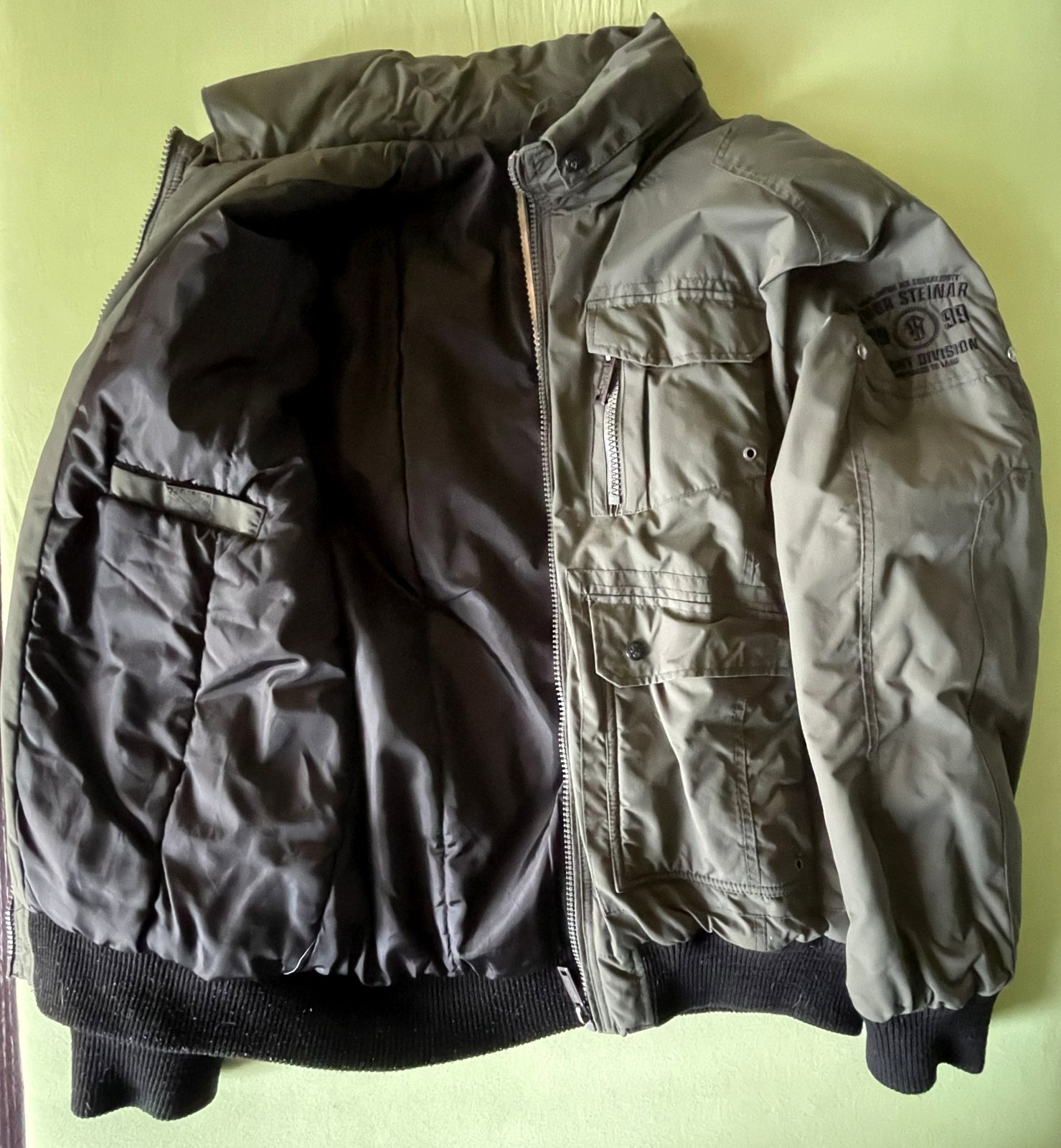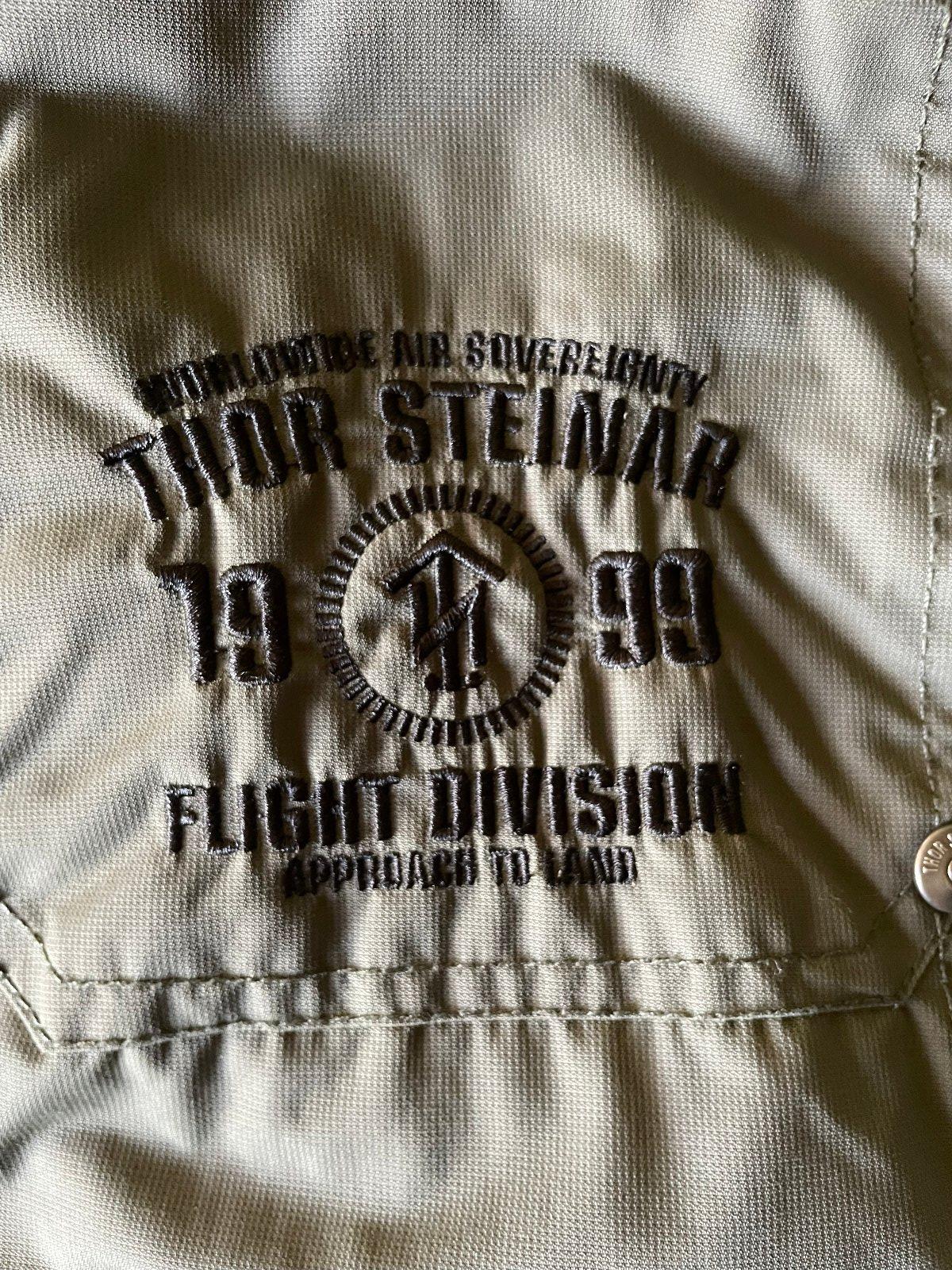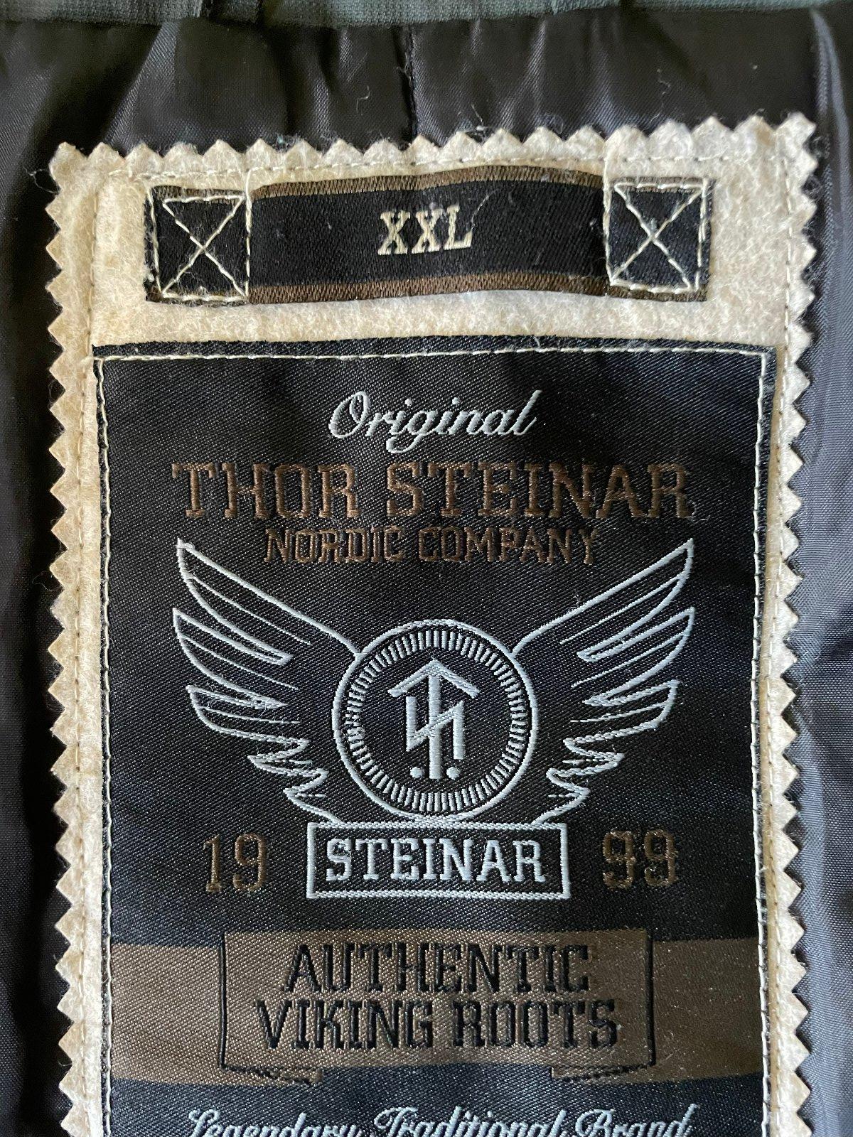 Zimná pánska bunda značky Thor Steinar. Veľkosť XXL. Vonkajší materiál - 100% nylon. Podšívka - 100% polyester. Výplň - 100% polyester. Zapínanie na zips, predné náprsné a bočné vačky, vnútorné vrecká. V límci skrytá kapucňa - zapínanie na cvoky. K dispozícii náhradné gombíky/cvoky. Málo nosená, vo veľmi dobrom stave. Rozmery: dĺžka 73 cm, šírka v podpazuší - 69 cm, dĺžka rukáva od podpazušia 57 cm, od ramena 71cm.