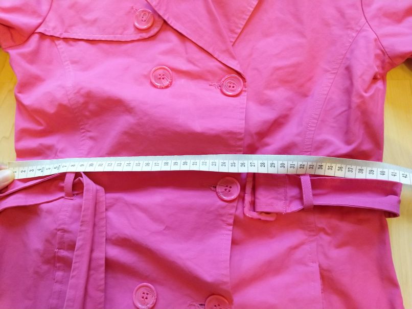 pekný stav, šuštiakový, podšitý flísom, chýba opasok-možno ho nájdem, jediná chyba sú vyťahané gumičky , ktorými je o gombičky uchytená kapuca- stačí vymeniť, šírka v pleciach -33cm, rukáv - 50cm, ...