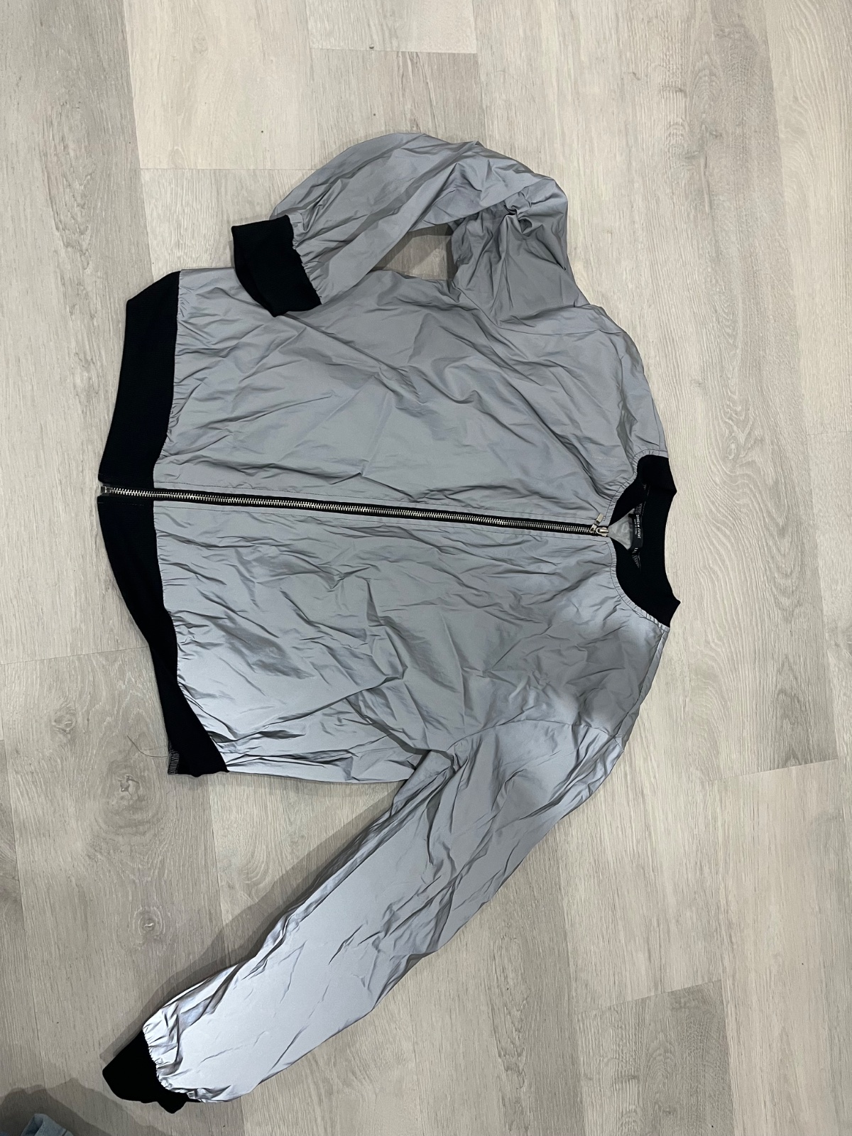 Bunda na svetle svieti, je z veľmi ľahkého akoby šuštakového materiálu.