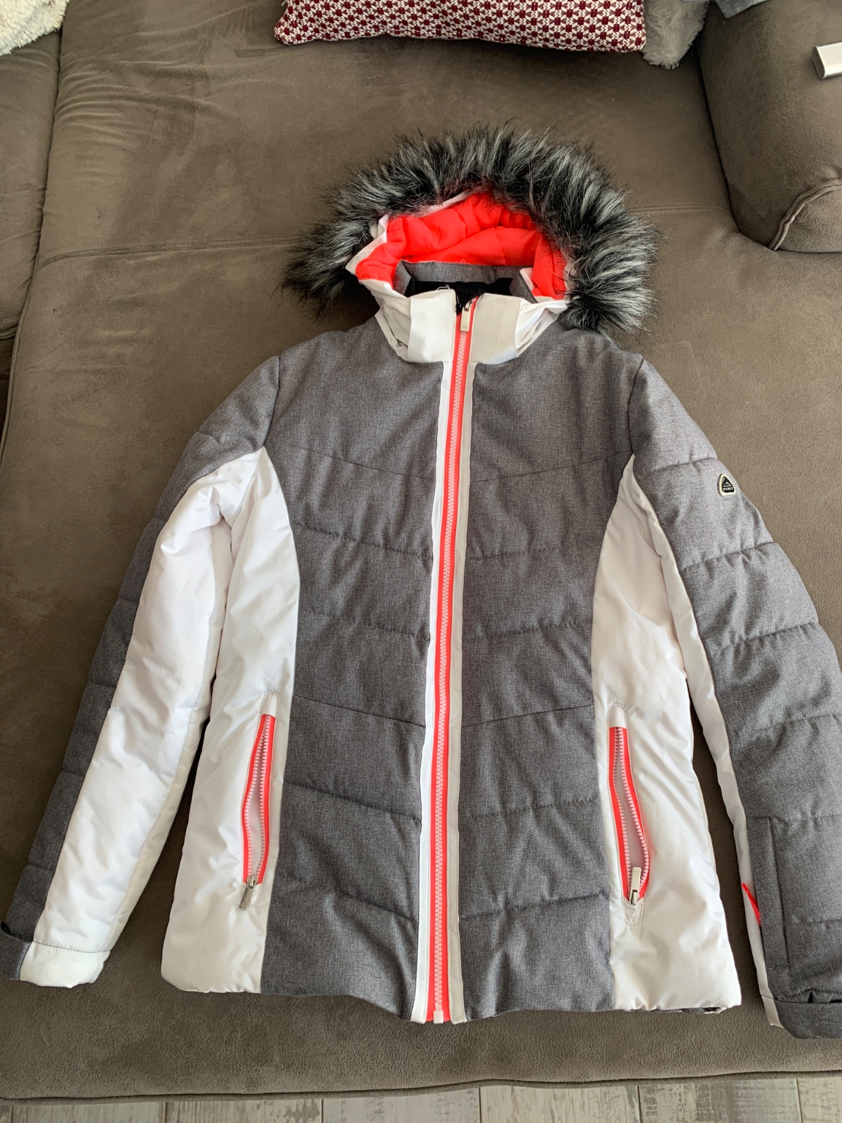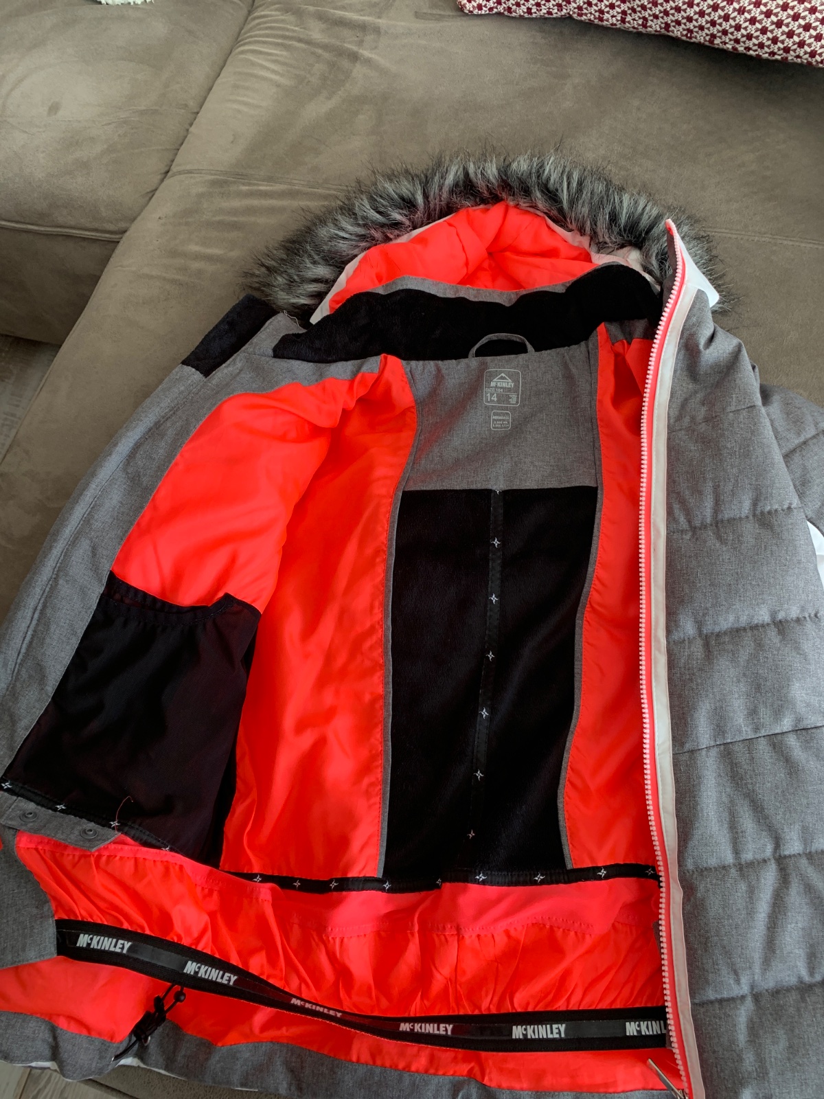 Ziadne poskodenie je v 100% stave, odnimatelna kapucka, velmi tepla dcerke na lyziach nebola ani raz zima