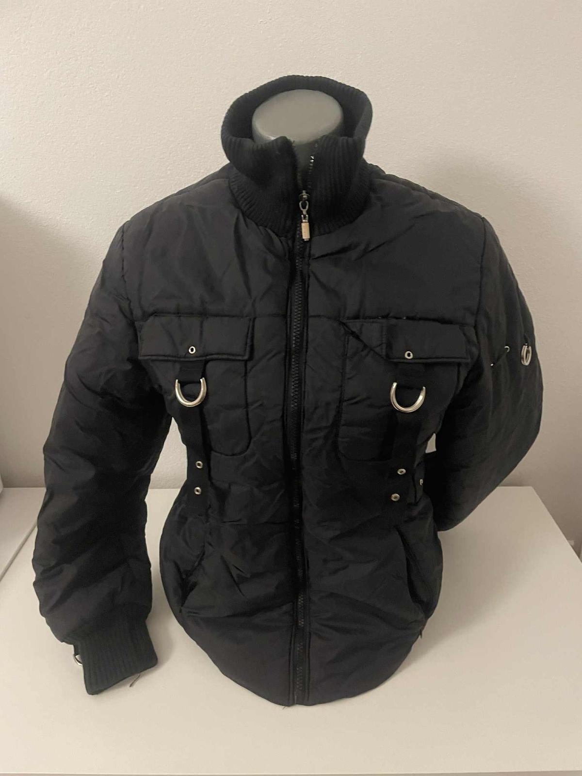 Čierna prešívaná bunda-vetrovka, skôr na miernu zimu, nie je veľmi hrubá. Dĺžka 62 cm, šírka 44 cm, rukáv od goliera 75 cm.