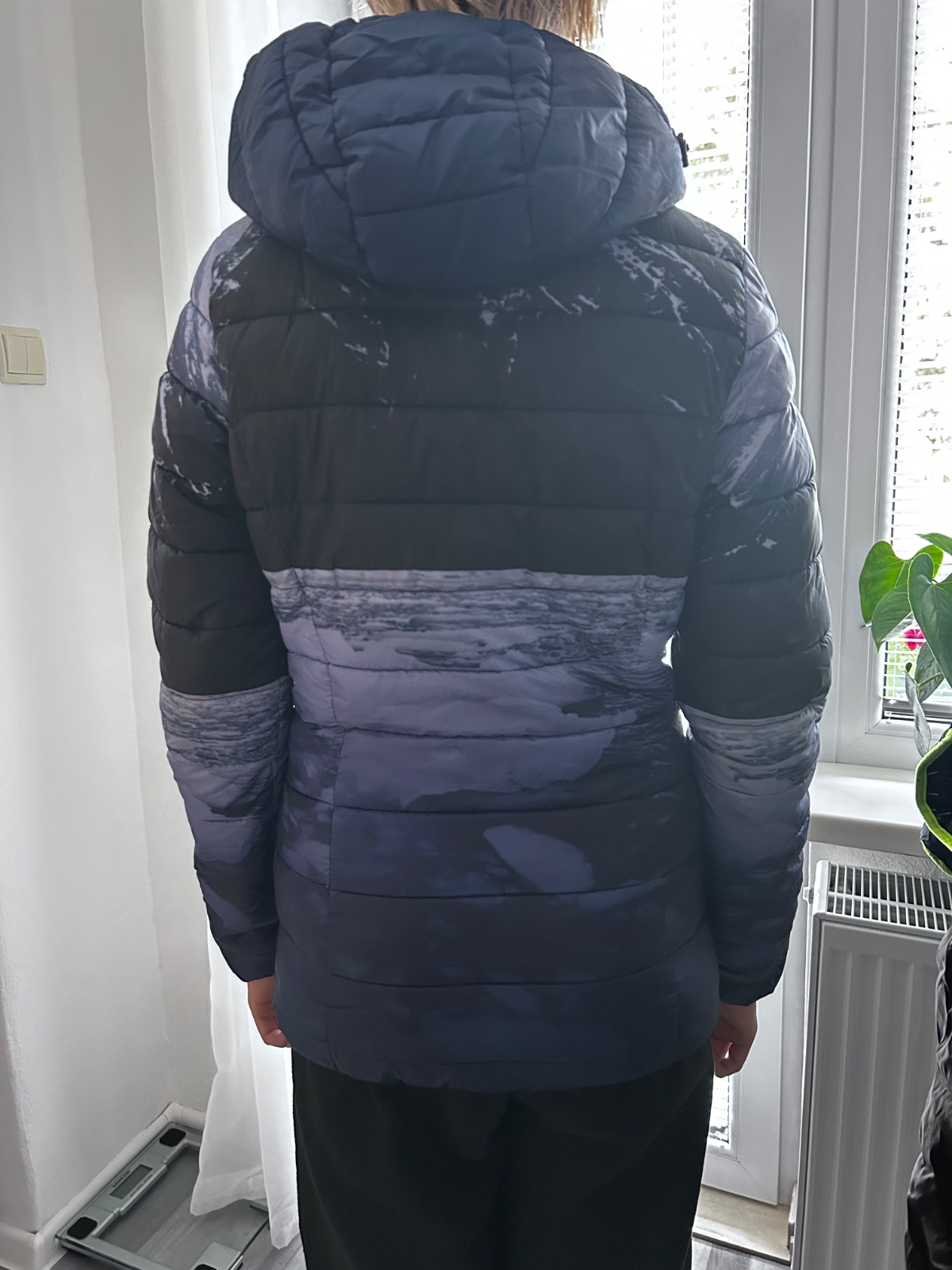 Teplá bunda v super stave, jediná nedokonalosť je povytiahnutá niť (viď foto), čo však nie je takmer vobec vidno, bunda je plne funkčná, veľkosť XS (sadlo by aj na menšie S), vrecká v predu, na kaž...
