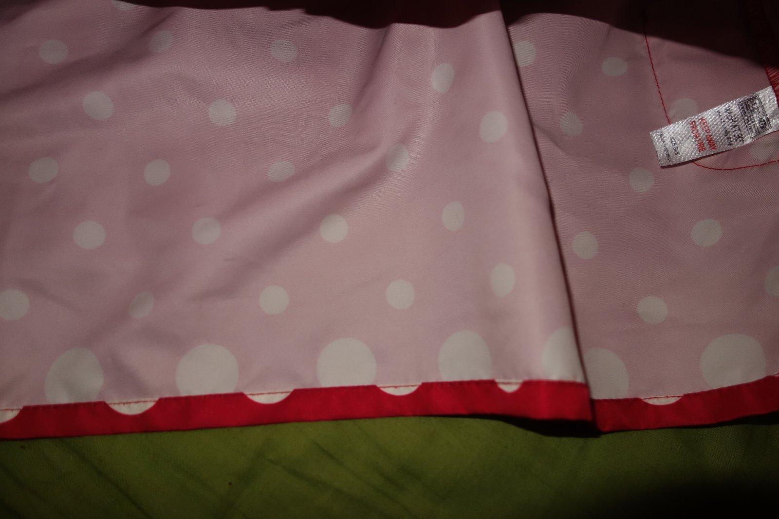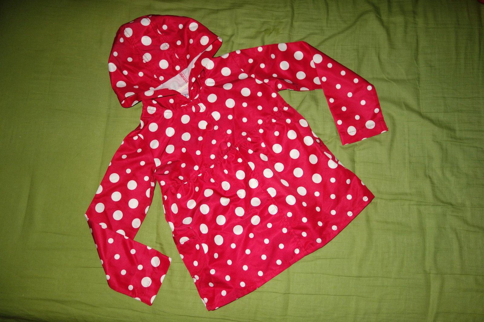 Krasna tenka bundicka vo velmi dobrom stave. Je nepremokava, nie je podsita. Zvnutra na chrbatiku ma napisane meno. Velkost je uvedena ako GXS, co by malo zodpovedat 128-ke.