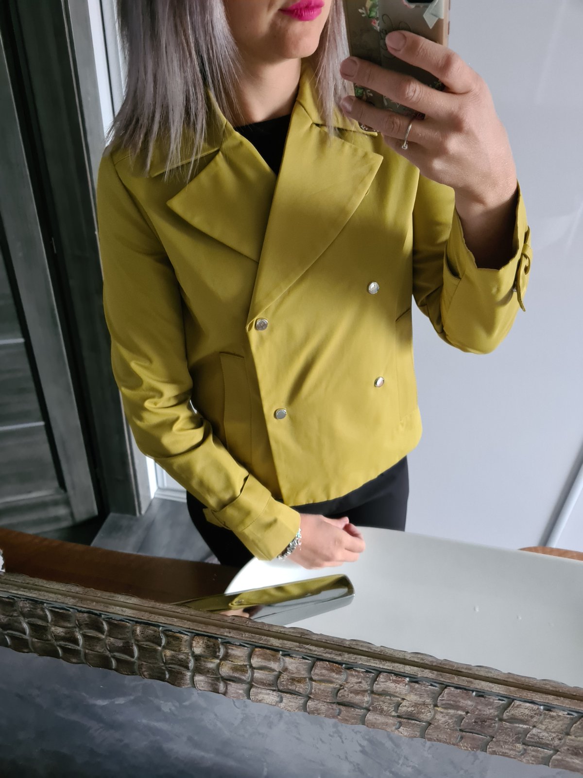 Bez poškodení. Oblečený 2x. Kupovany v Reserved za 49e už mi je úzky. Farba veľmi zaujímavá naživo krajšia. Veľkosť uvedená 34 no sedi aj 36.