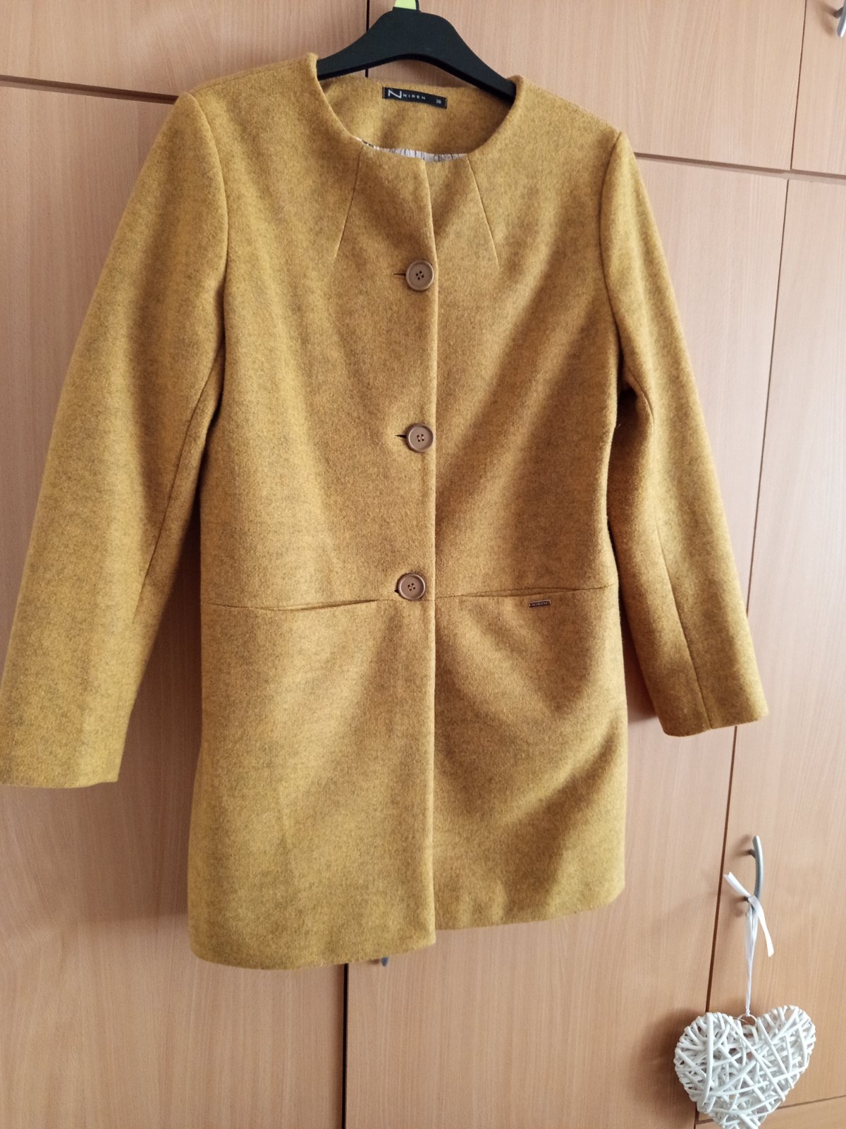 Krasny horcicovo zlty kabatik s opaskom, dlhsi pod zadok v top stave 1x obleceny. Farba krajsia ako na foto.