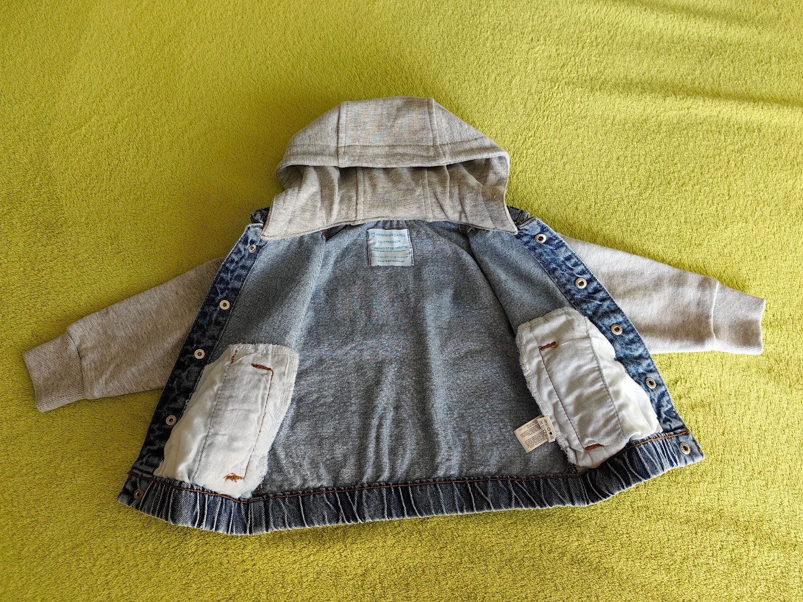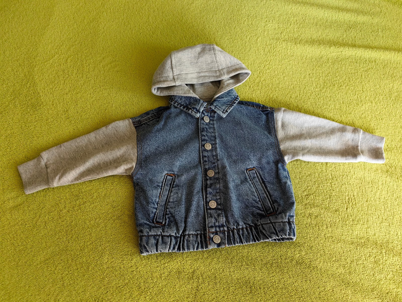 Nenosená jarná bunda značky Primark, písaná veľkosť 92. Kombinácia rifloviny a teplákoviny. Zloženie 100% bavlna. Osobný odber v Bratislave, alebo poštou, poštovné nie je zahrnuté v cene.