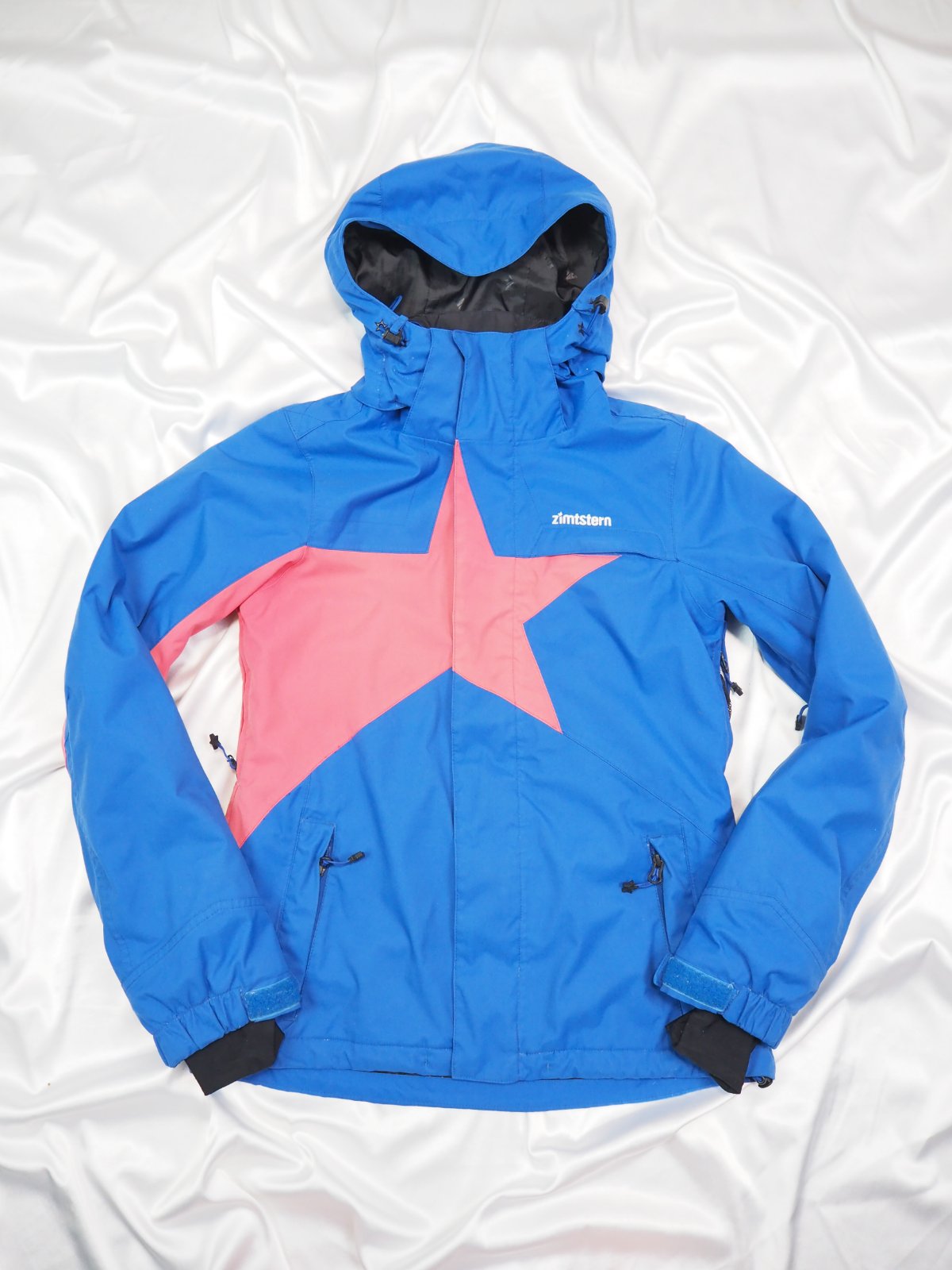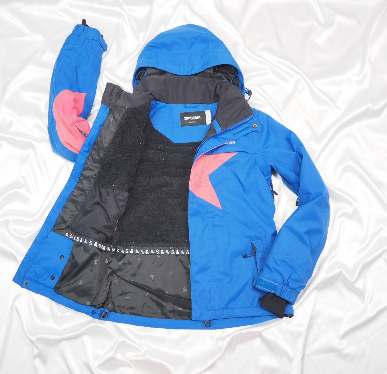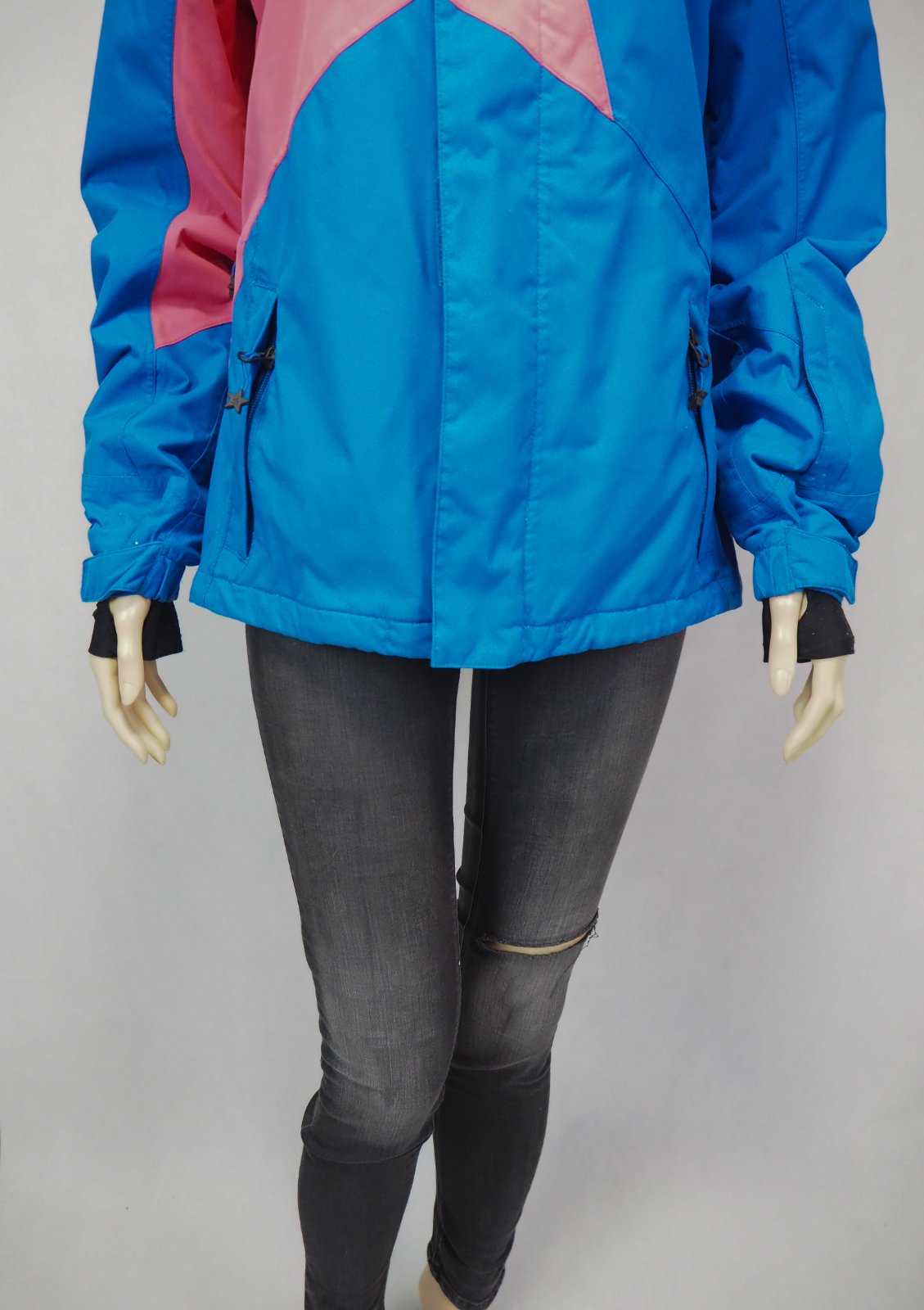 Luxusná zimná bunda modrej farby s ružovým vzorom, materiál 100% nylon, podšitá kožušinkou, super stav.