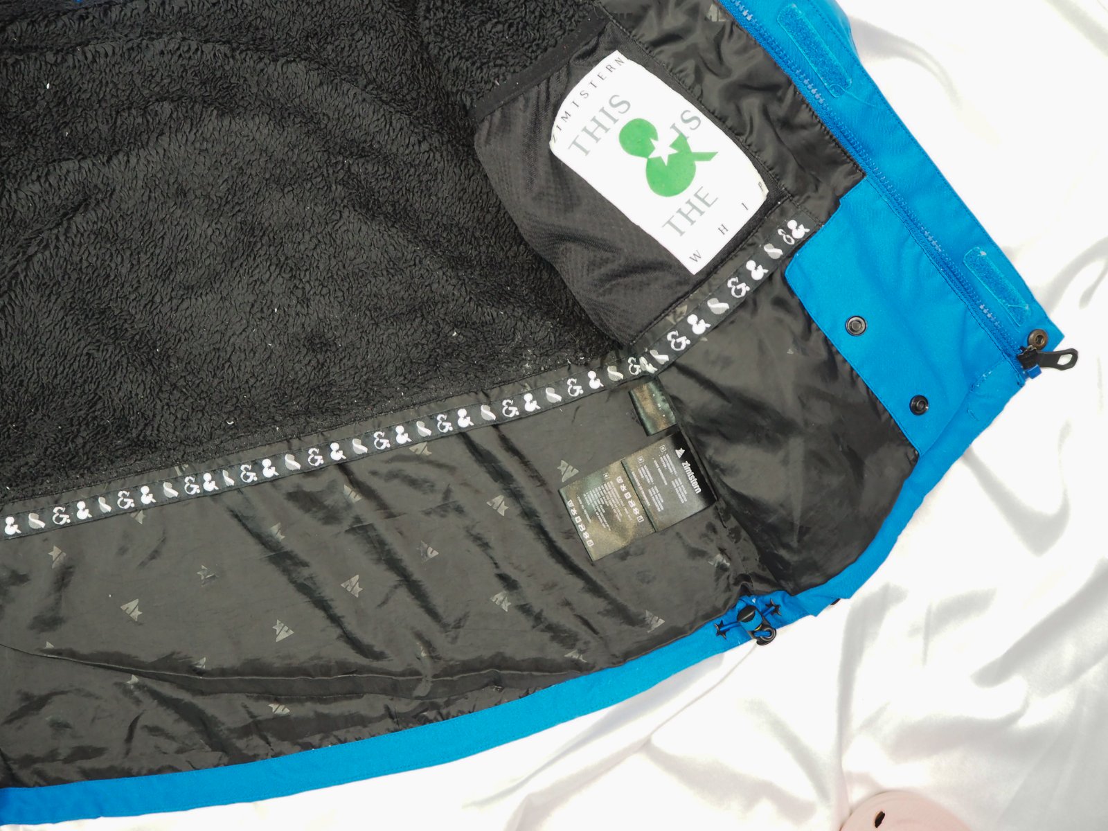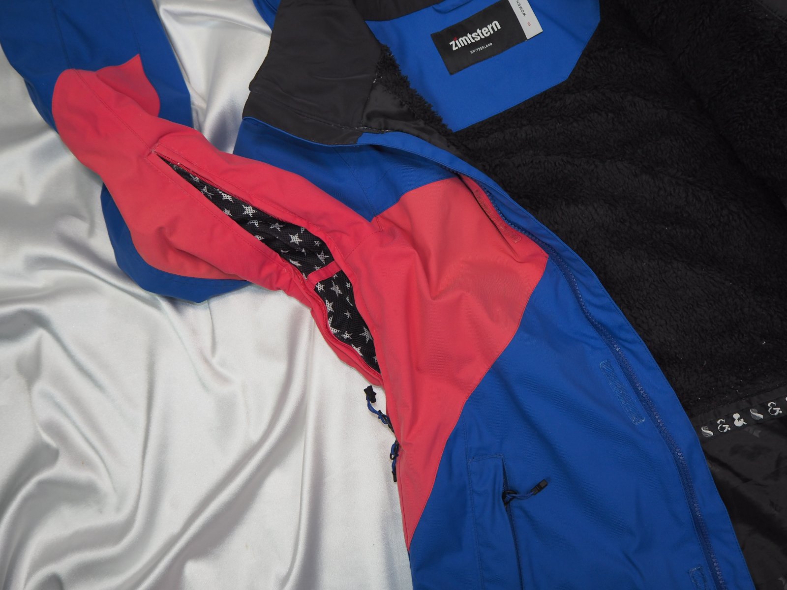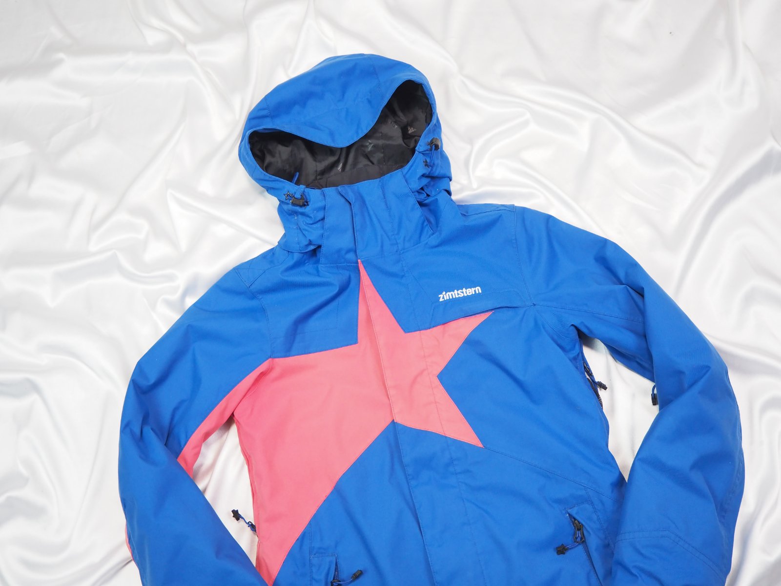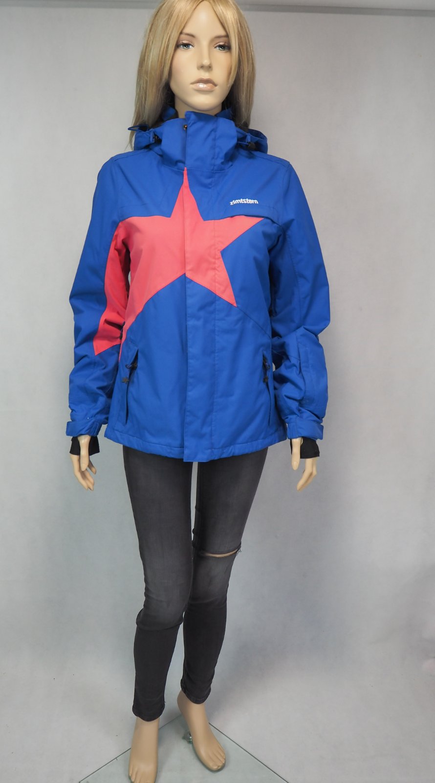 Luxusná zimná bunda modrej farby s ružovým vzorom, materiál 100% nylon, podšitá kožušinkou, super stav.