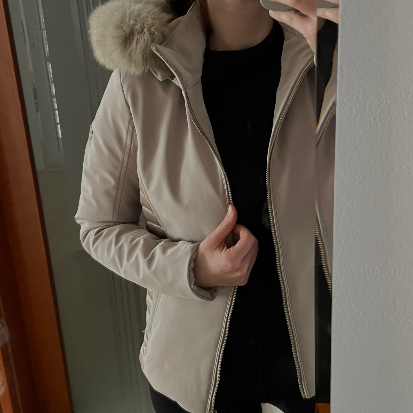 Bunda má pravú kožušinu na kapucni – bohatú, hustú, odnímateľnú.