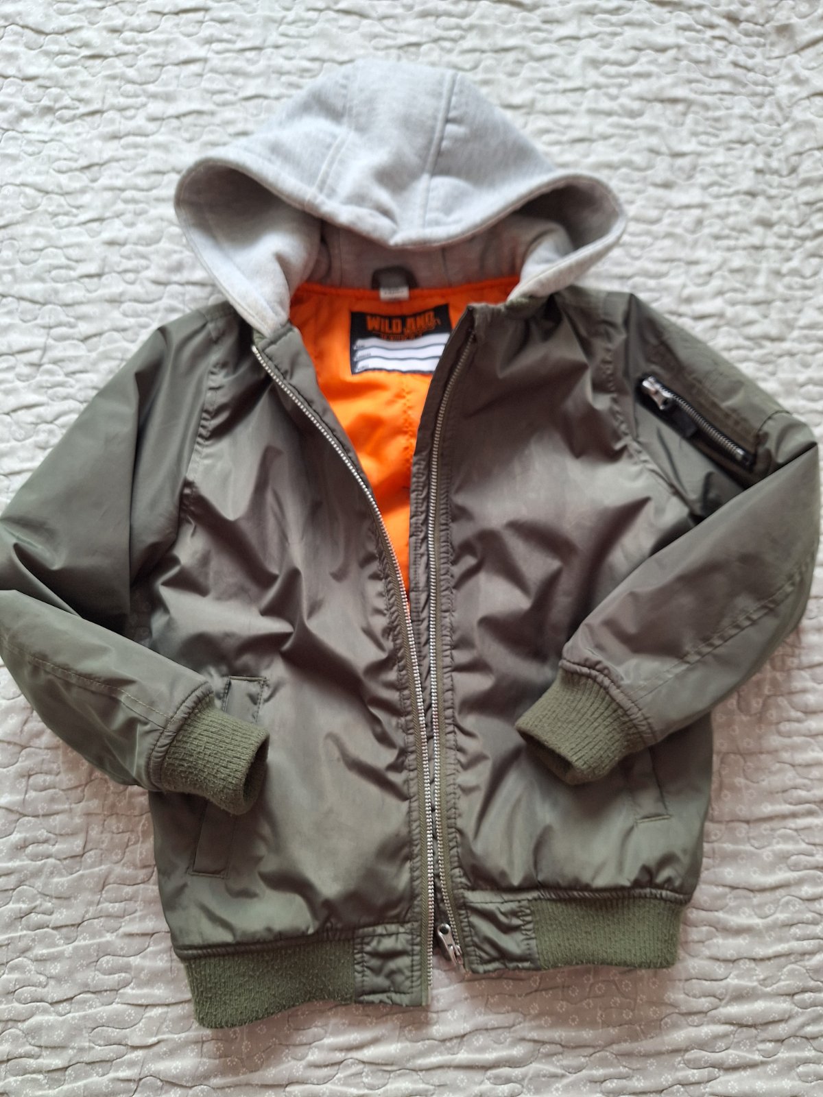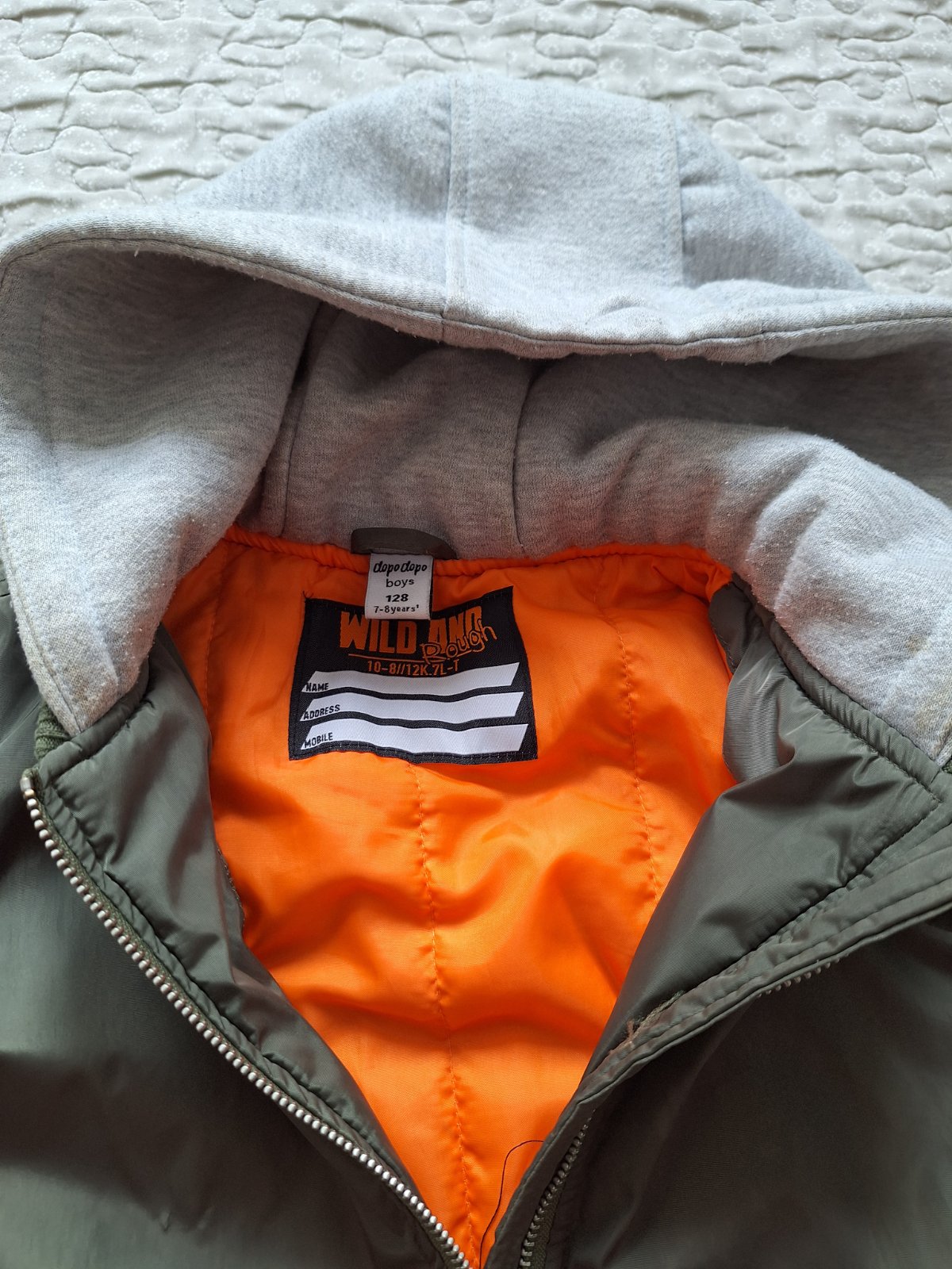 Bunda podšitá na hrudi s kapucňou, veľkosť 7-8rokov. Top stav, málo nosená, syn nestihol vynosiť. Vrecká má tiež podšité a zapínajú sa na patent.V