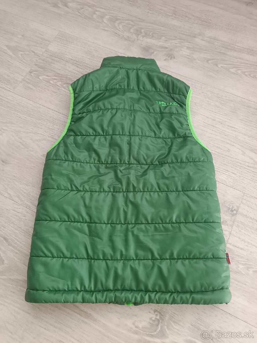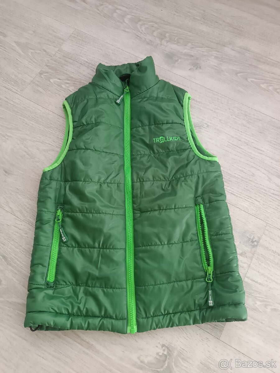 Detská športová vesta Trollkids, je ľahká a pohodlná, skvele sa hodí ako na výlety, tak aj na každodenné nosenie. Vodotesné mikrovlákno poskytuje vynikajúcu izoláciu aj v mokrých podmienkach. Vetru odolná vonkajšia tkanina, utkaná z tenkej polyesterovej priadze, chráni pred studeným vetrom a zároveň je priedušná. Výborný stav, bez poškodenia, málo nosená.