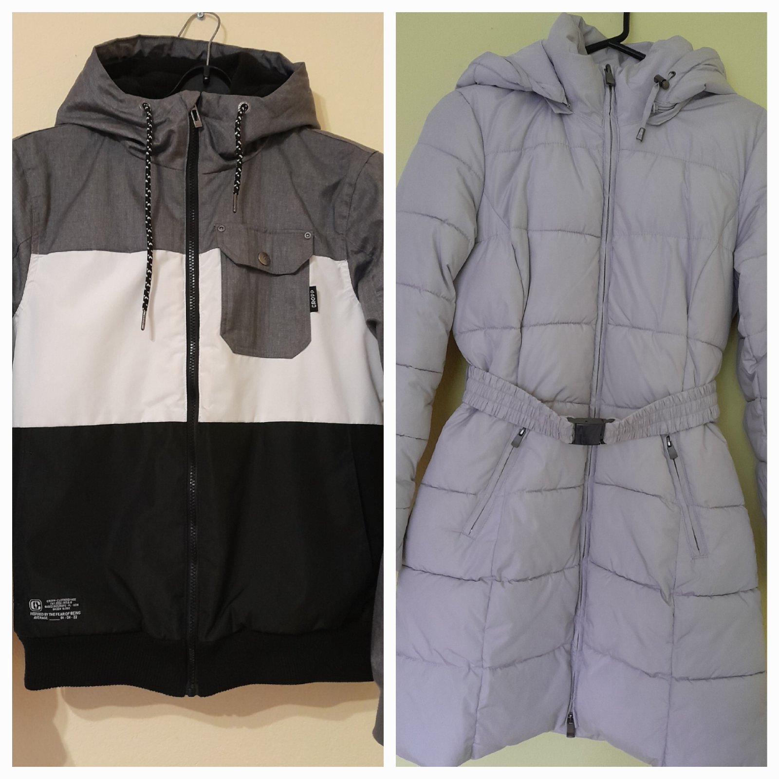 Sivý kabát s odop.kapuckou v.38/M za 14€, CROOP vetrovka v. XS/S v 100% stave za 13€.Úhrada vopred + poštovné alebo osobne v Nitre. Dobierka NIE dohoda možná.