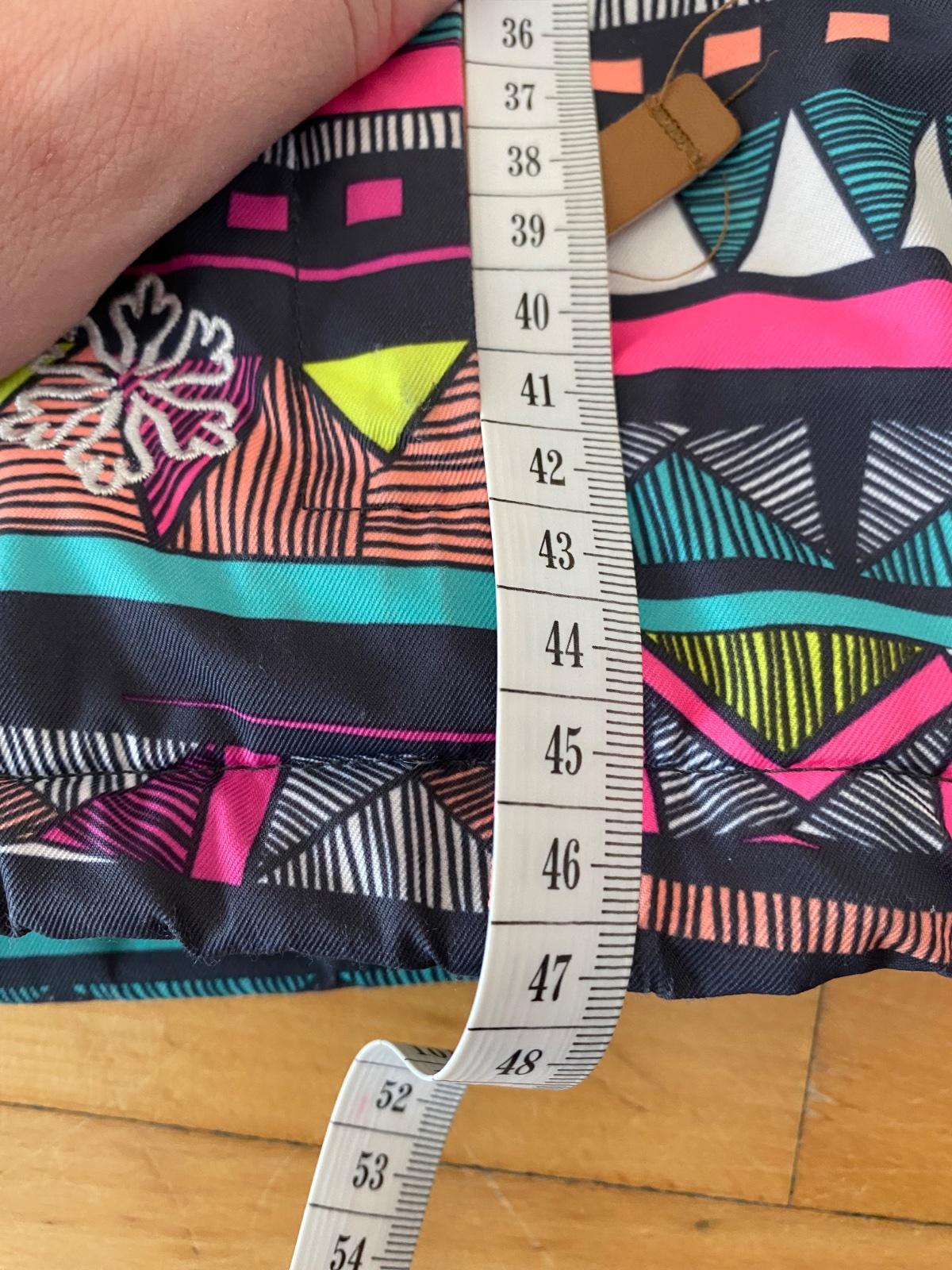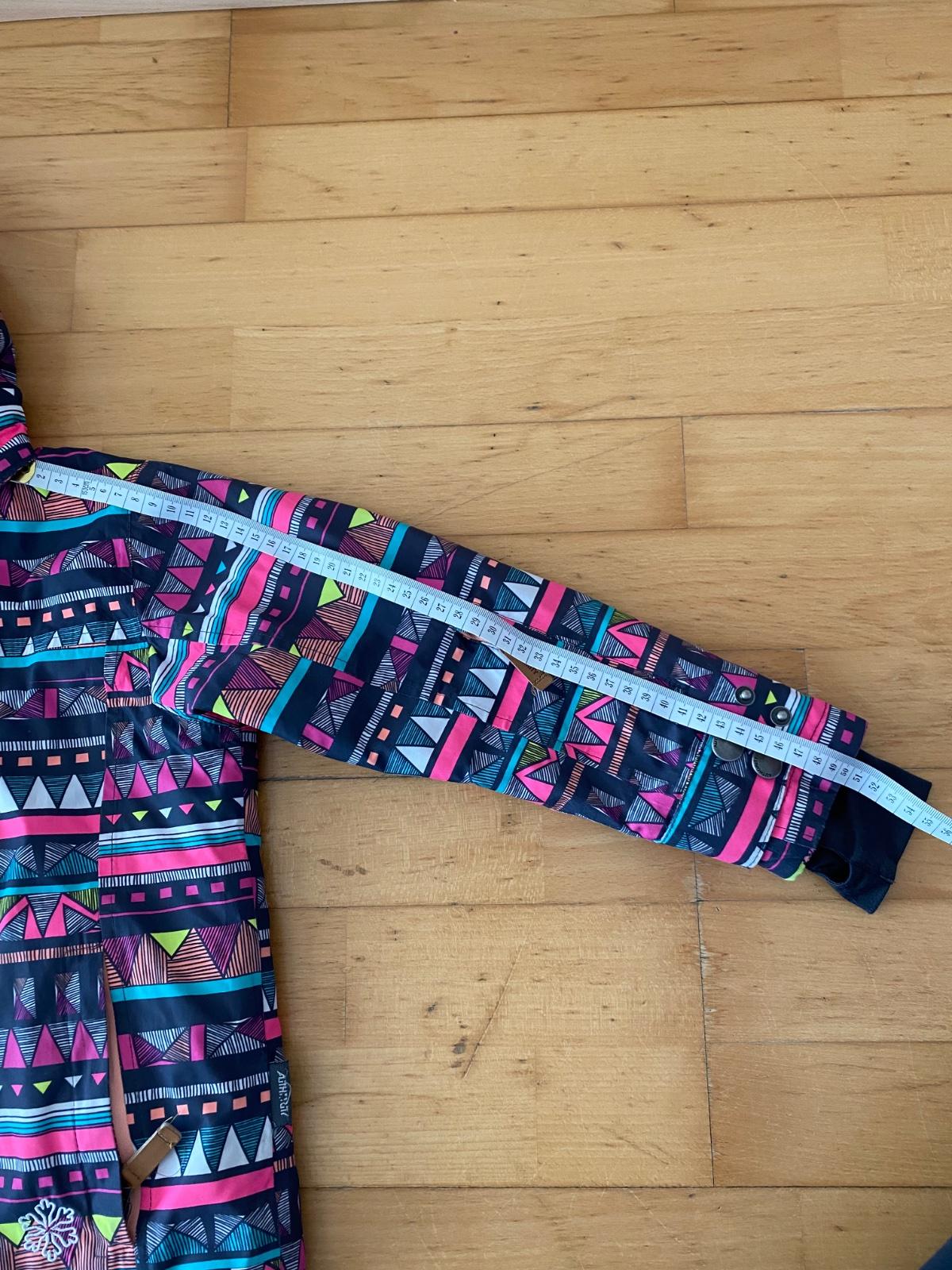 Kvalitná lyžiarska bunda, rozmery nafotené. Drobné žmolky na patentoch, inak bez závad.