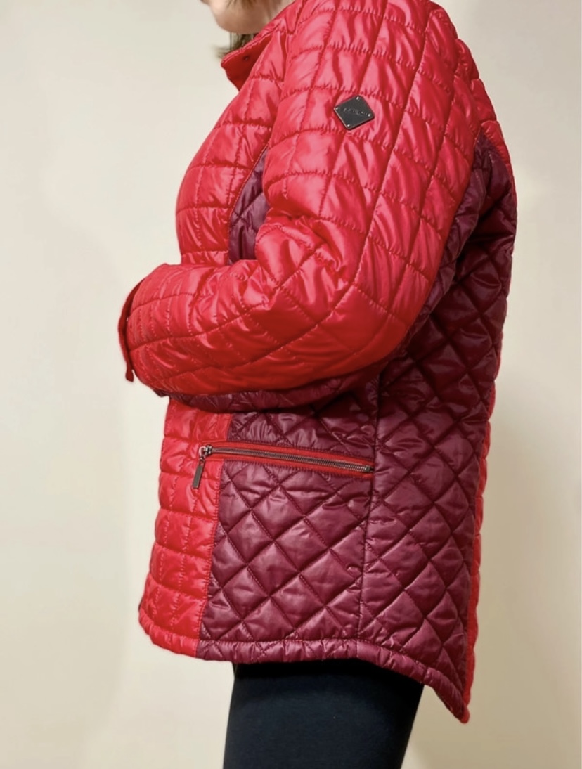 Lahucka ČERVENÁ (neviem tak ofotit) predĺžená vetrovka. Dĺžka 78cm, obvod 2×56cm