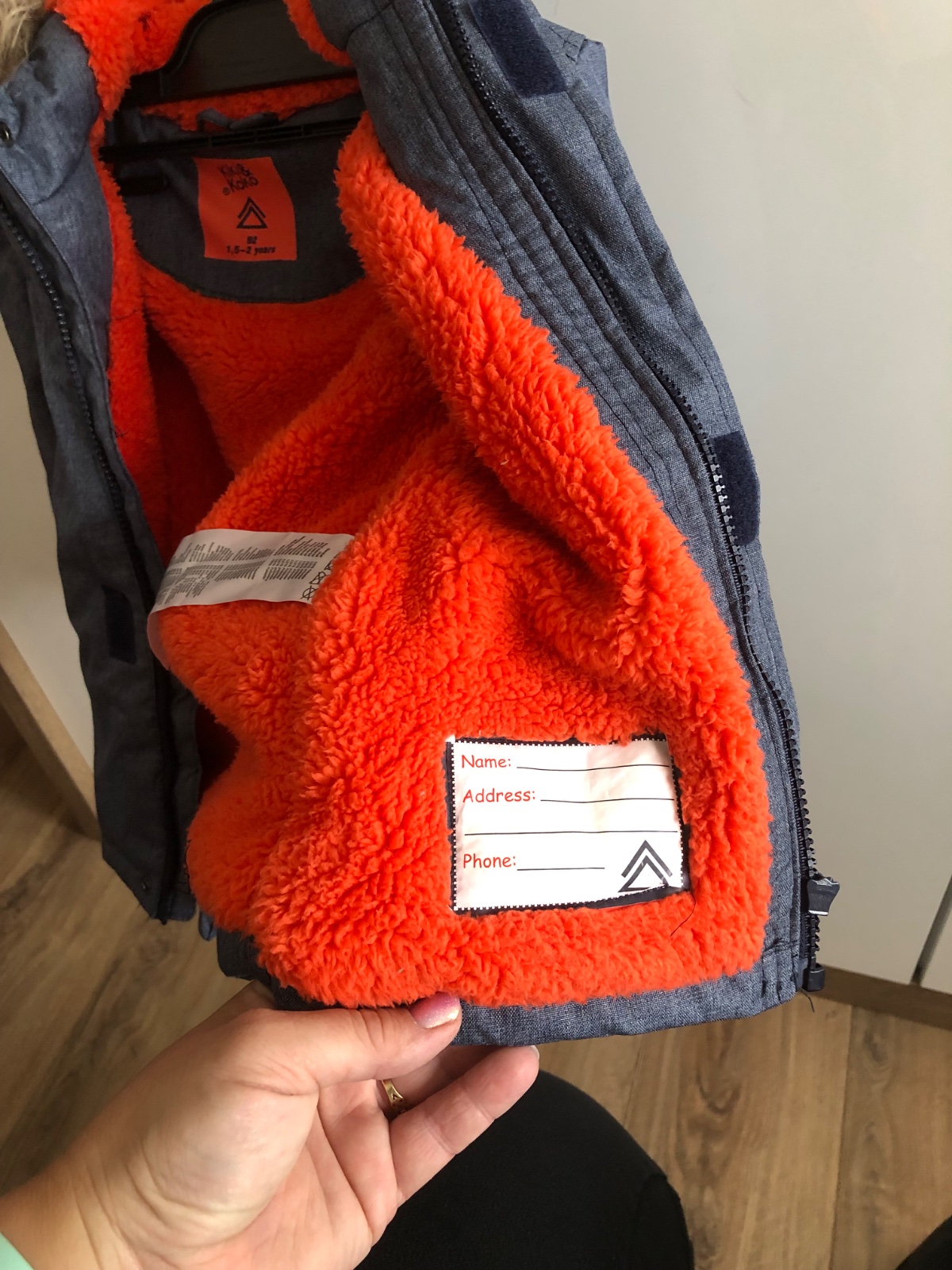 Má 1 chýbajúcu časť suchého zipsu (ani nie je potrebný, keďže bunda je na zips a druhý suchý zips je v poriadku). Vid foto.