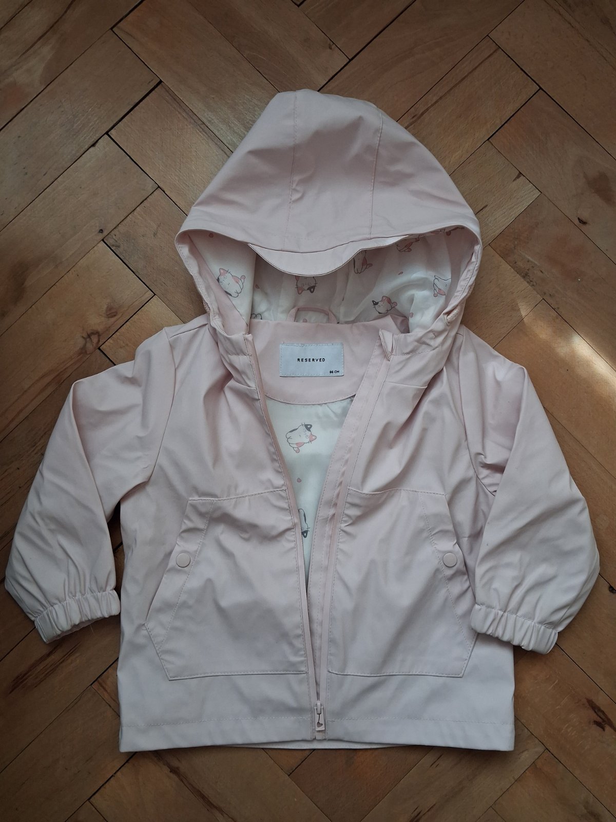 Tenká pláštenka, v páse sa dá stiahnuť šnúrkami, vhodná na obdobie jar/leto. Veľkosť 86. Oblečená 1x